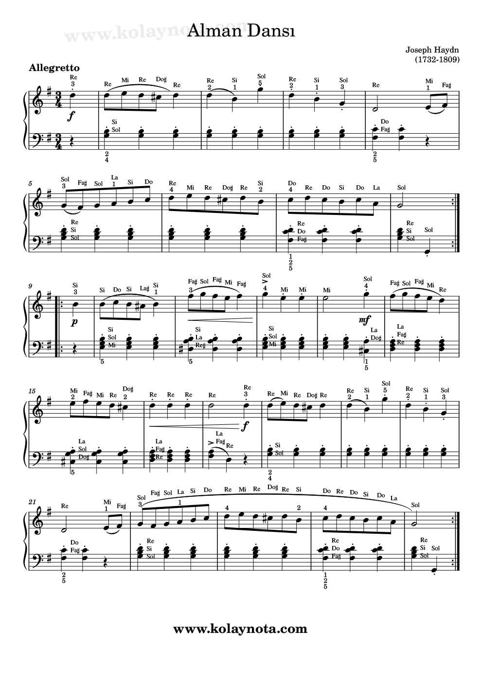 Joseph Haydn – Alman Dansı – Piyano Notası
