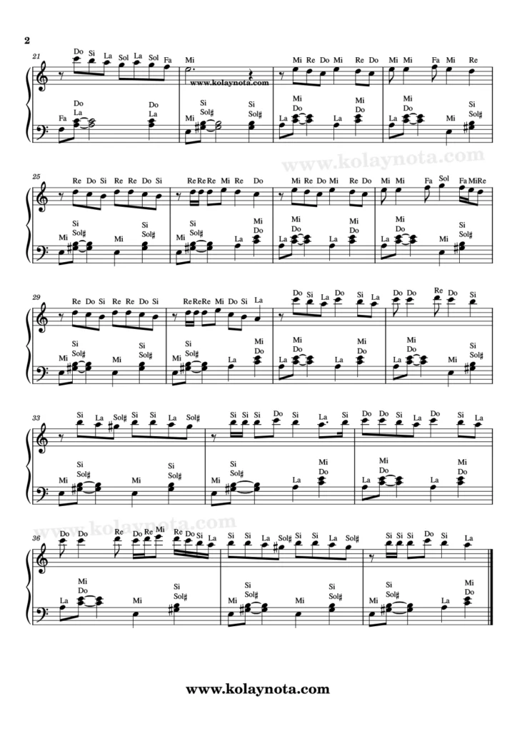 Sezen Aksu’nun bu güzel şarkısını paylaşacağım bu yazıda. Do Re Mi ve kolay nota olarak görebilirsiniz. Şarkının sözü ve müziği yine Sezen Aksu’ya ait. Notasyonları La minör tonunda hazırladım. Melodika, keman, org, flüt gibi çalgılarda çalabilirsiniz. Başarılar.