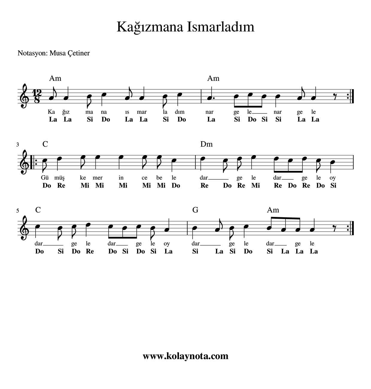 Kağızmana Ismarladım Kolay Notası – Do Re Mi Notası