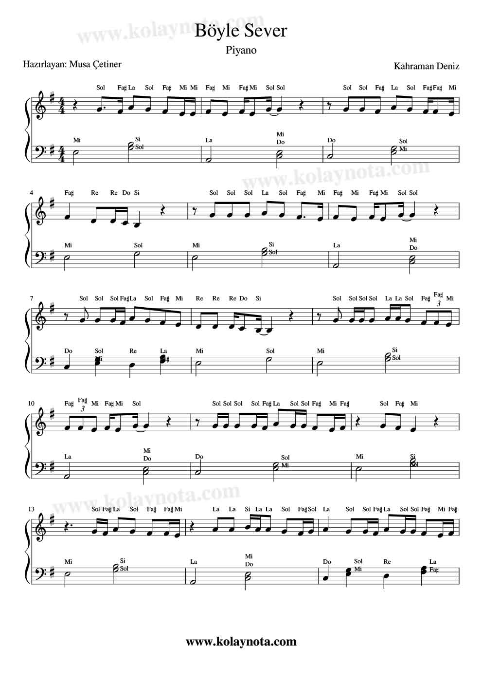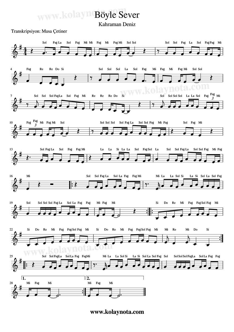 Kahraman Deniz – Böyle Sever – Nota