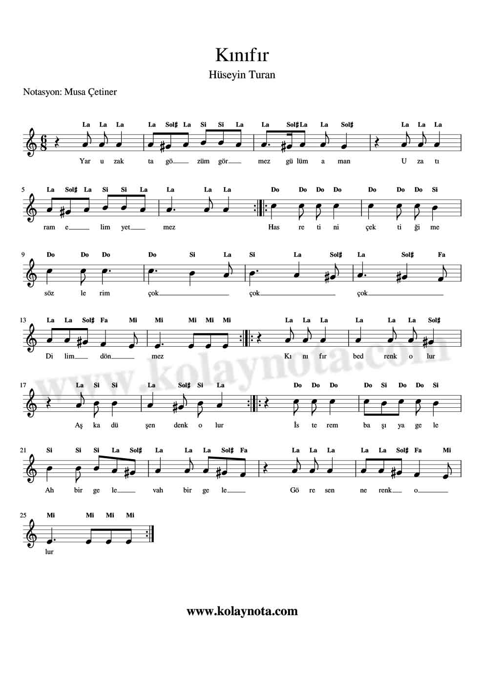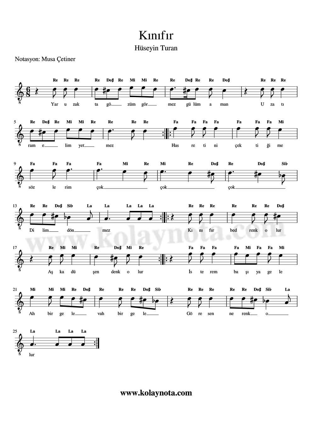 Kinifir Bedrenk Olur – Kolay Nota by Musa Çetiner