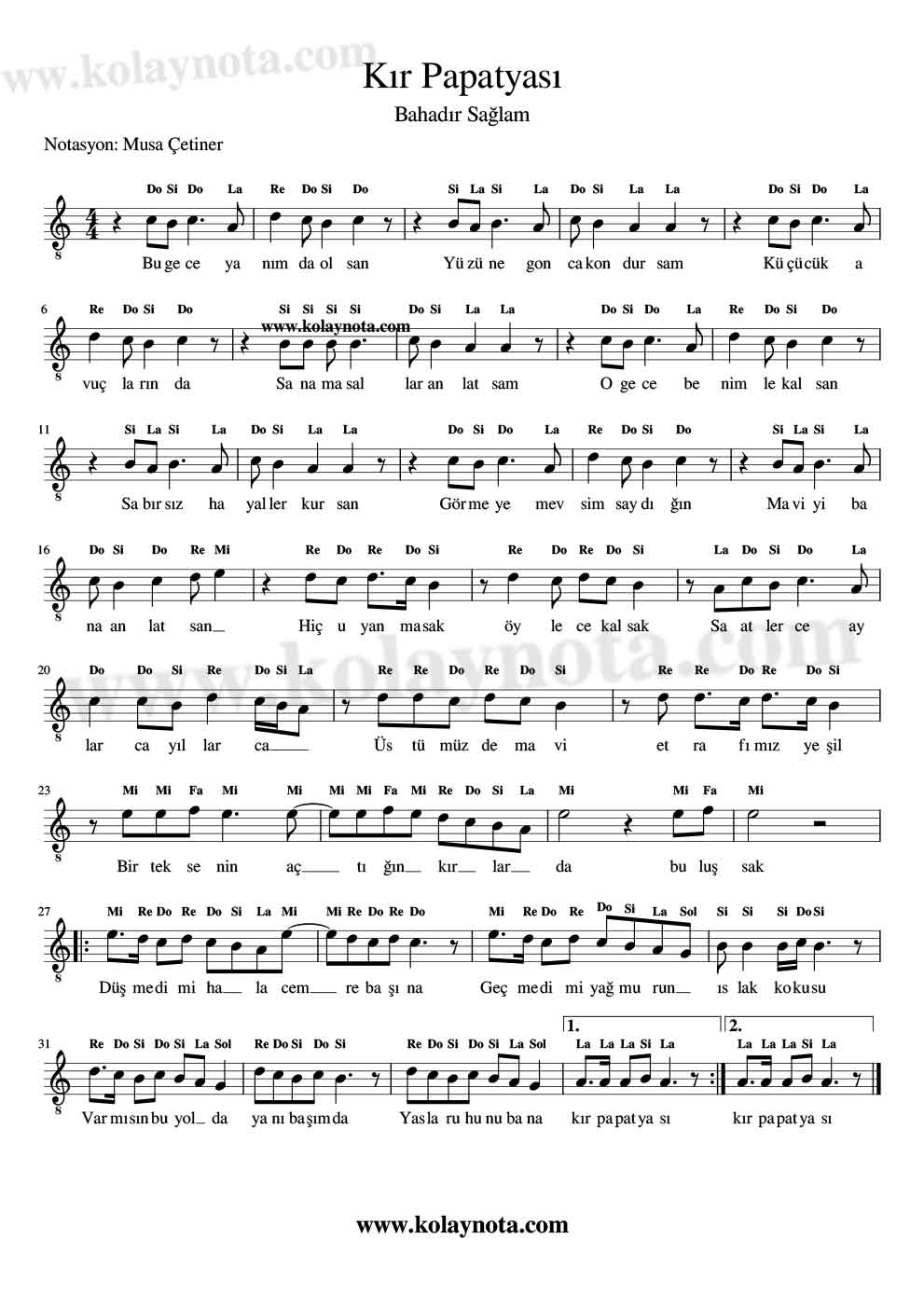 Kır Papatyası şarkısını melodika, keman, piyano, org, flüt çalgılarında çalabilir, notasını dinleyebilirsiniz. Başarılar