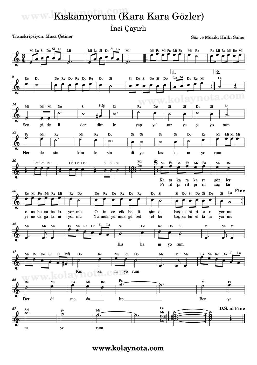 Kıskanıyorum – Kara Kara Gözler – Nota