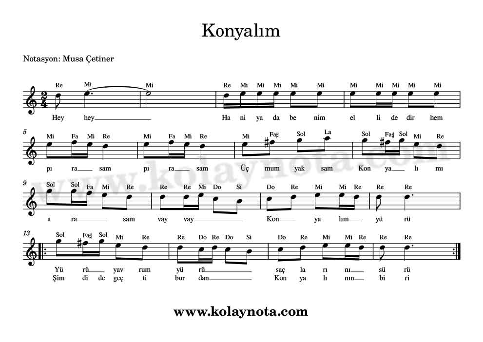 Konyalım; çoğu kişinin bildiği hareketli bir türkü. Do Re Mi melodika ve kolay notalarını paylaşacağım bu yazıda. Türkünün notalarını melodika, keman, flüt, org, bağlama çalgılarında çalabilirsiniz. Başarılar.