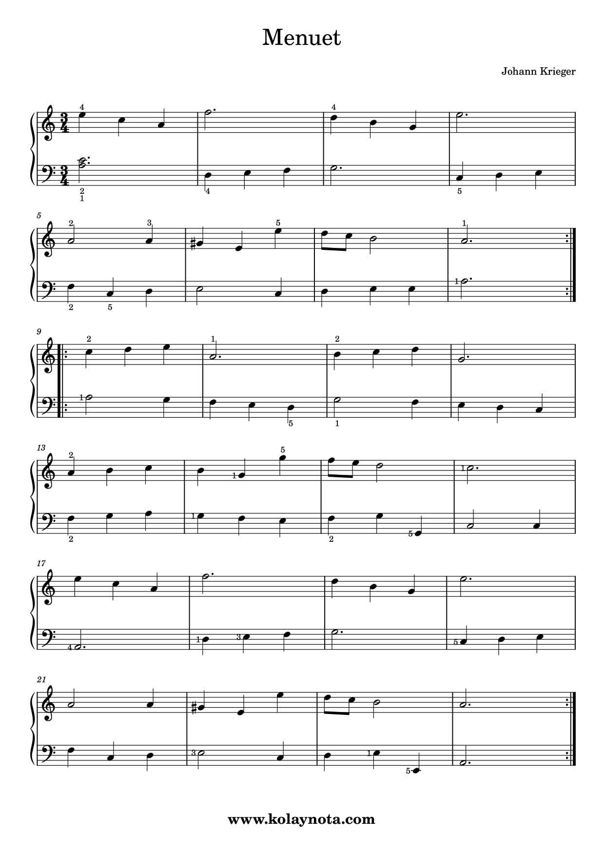 Krieger – Menuet Piyano Notası