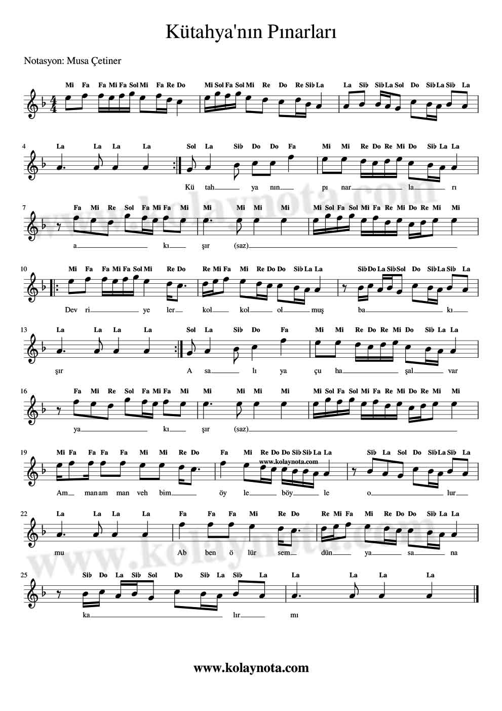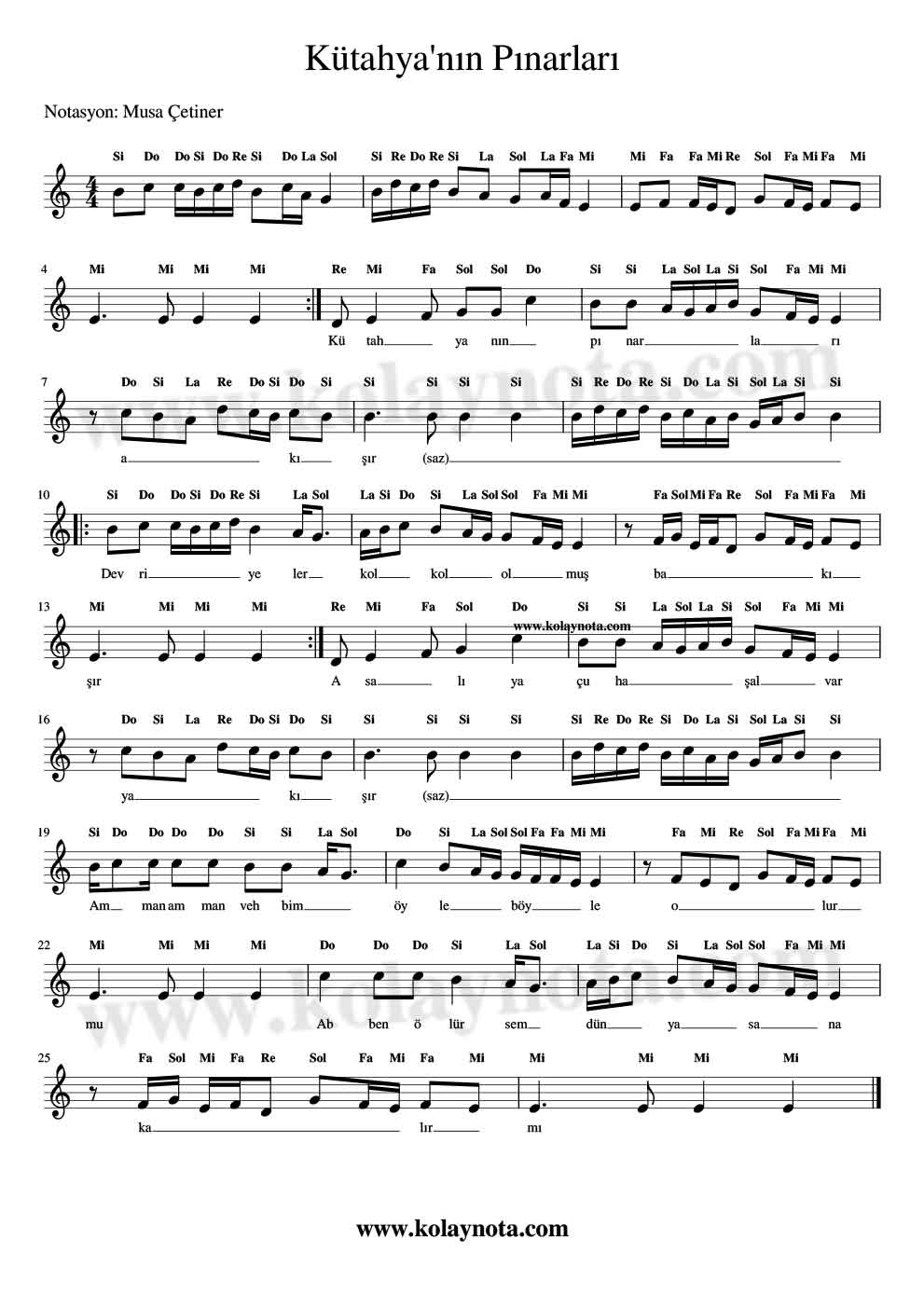 Kütahya’nın Pınarları – Kolay Nota by Musa Çetiner