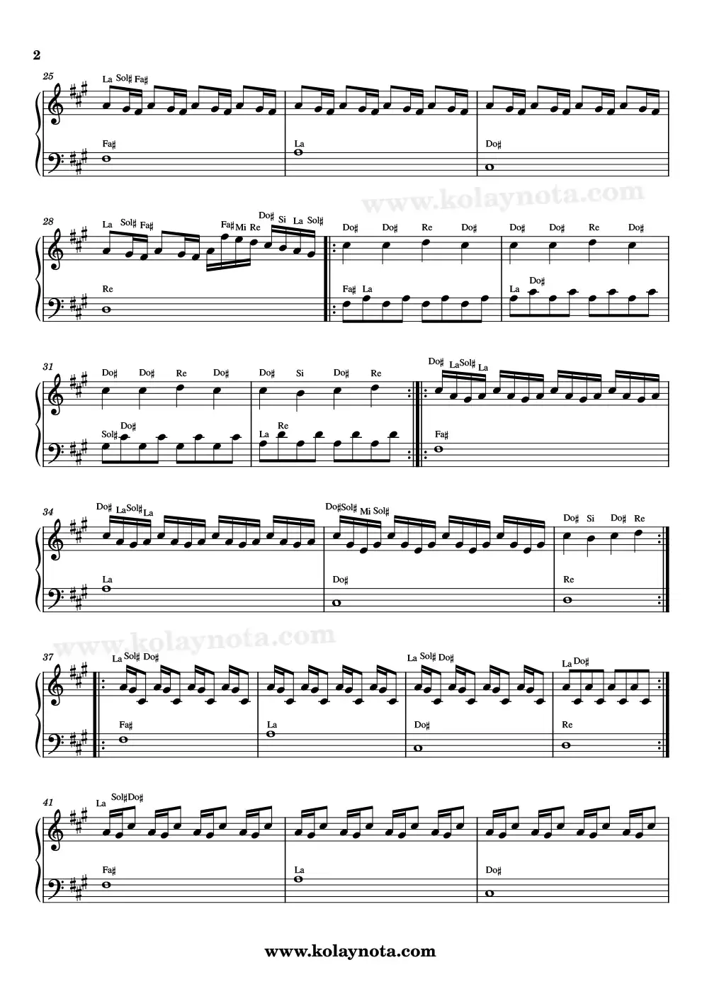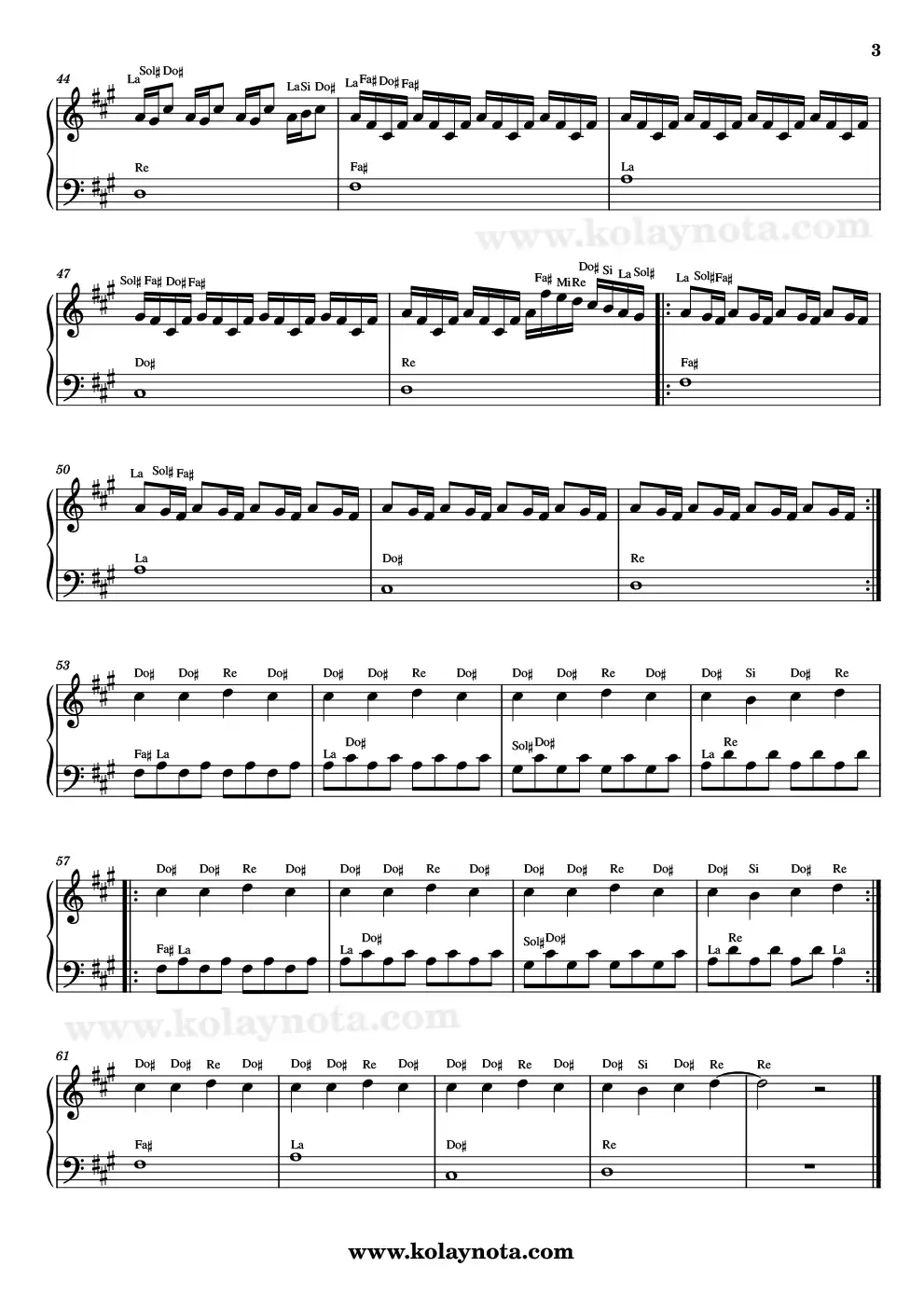 Notasyon her ne kadar piyano için olsa da, sağ eldeki melodiyi keman melodika flüt org gibi çalgılarda da çalabilirsiniz.