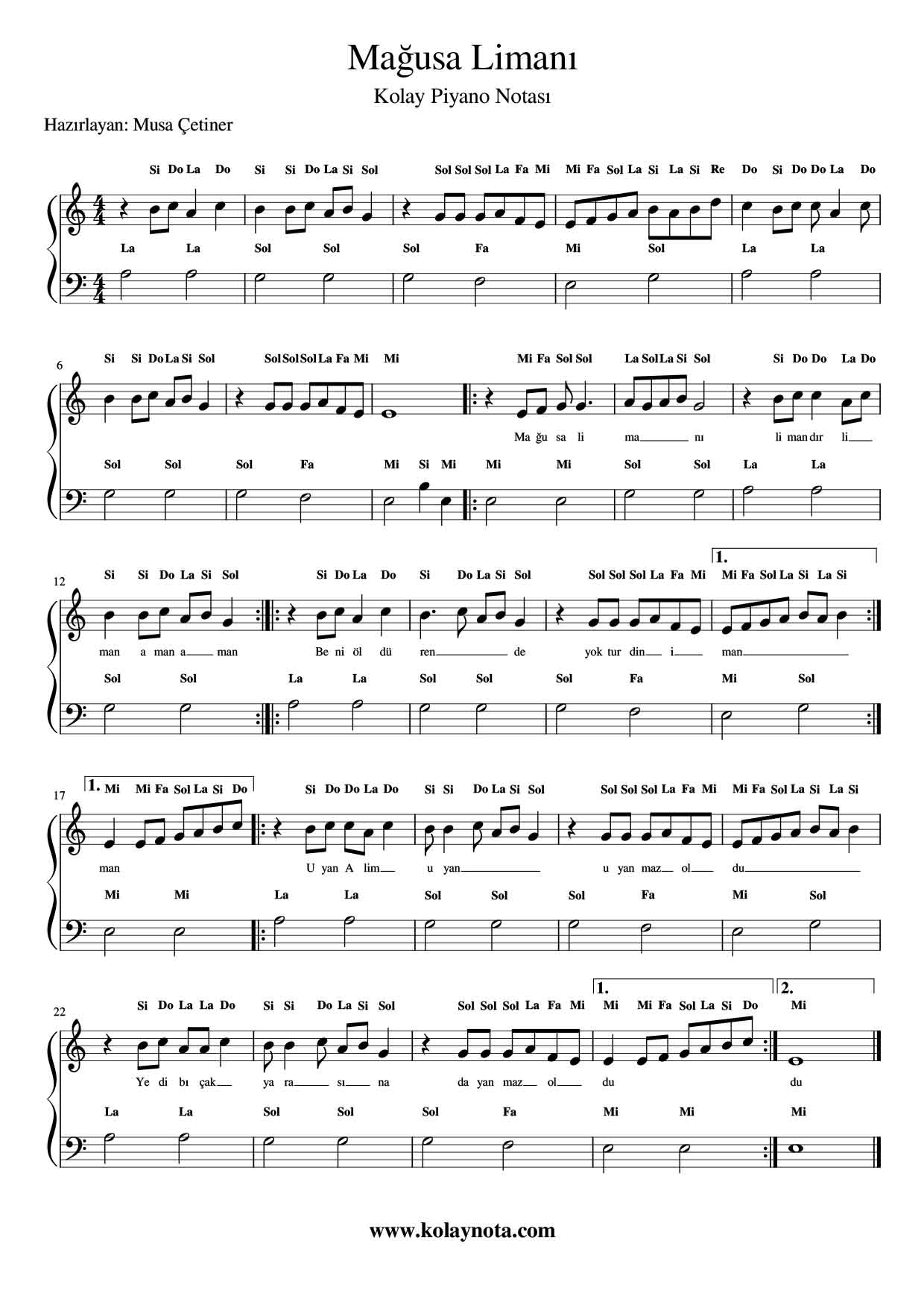 Magusa Limanı çok sevilen bir türkü. Kolay piyano biçiminde hazırladım. Notasını pdf ve jpg olarak görebilir, videosunu izleyebilirsiniz. Başarılar.