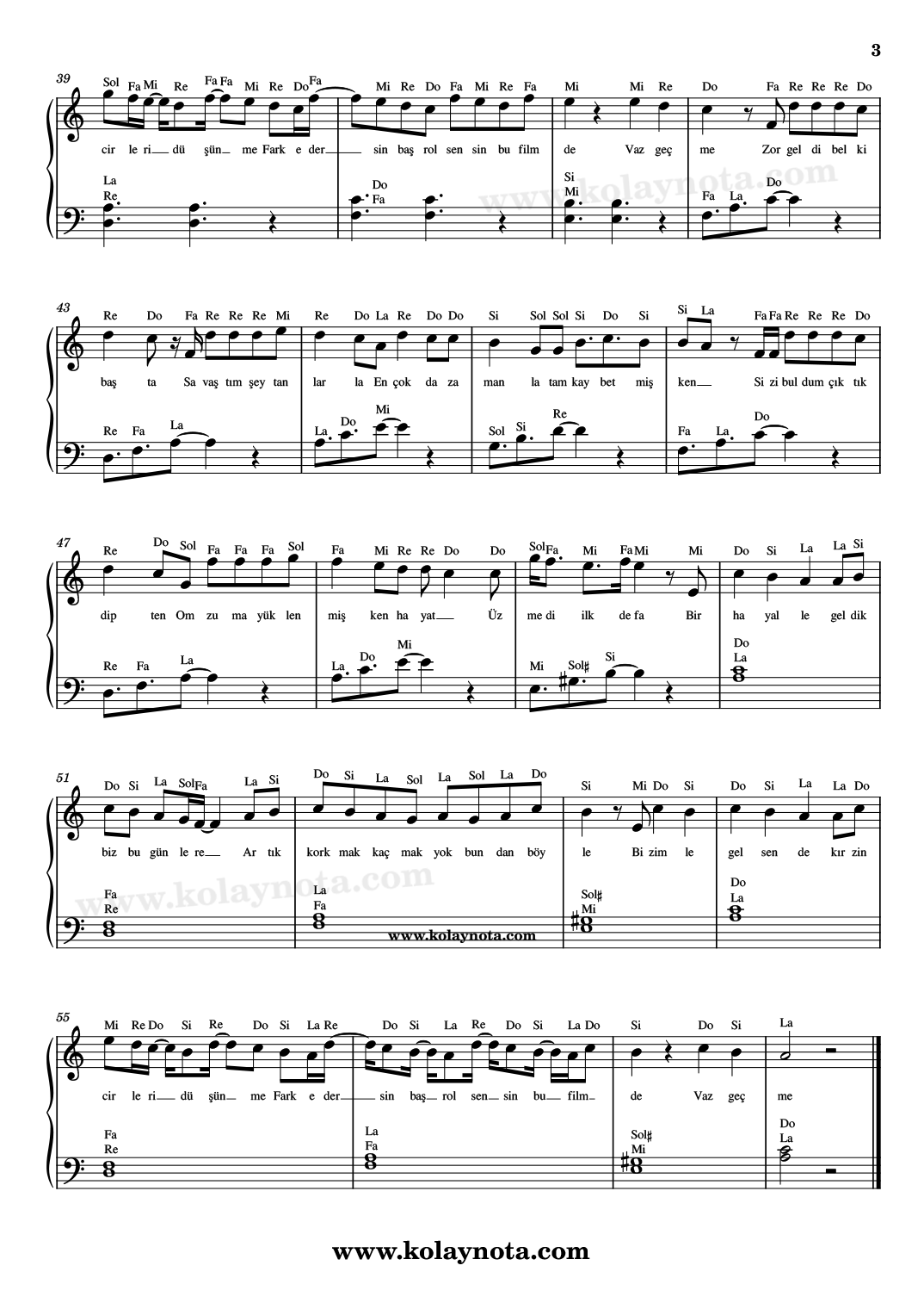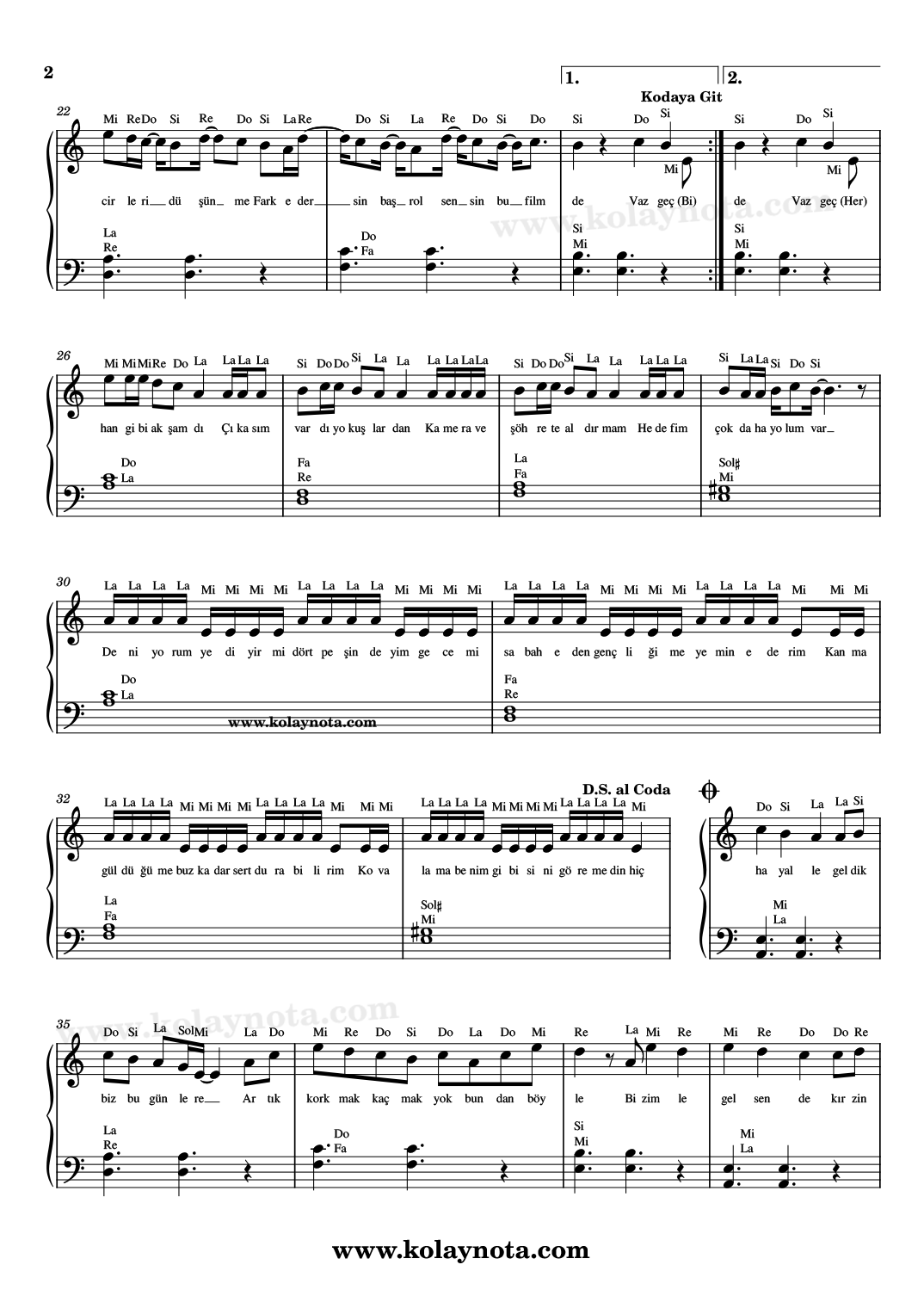Piyano düzenlemesini akor eşlikli ve kolay biçimde hazırladım. Biraz uzun bir şarkı, çalması karışık olabilir. Youtube kanalımdaki videosunu izleyerek çalışabilirsiniz. Notasyonu PDF ve imaj biçiminde görüntüleyebilirsiniz