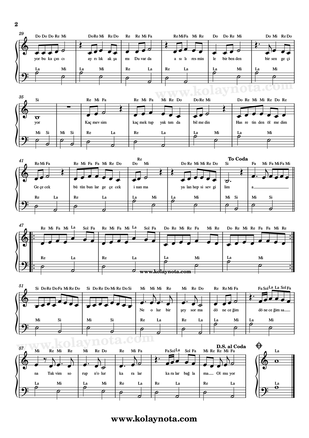 Piyano düzenlemesini kolay piyano biçiminde hazırladım. Sol elde tek sesli bir eşlik var. Youtube kanalımdaki videosunu izleyerek doğru bir şekilde çalışabilirsiniz.
