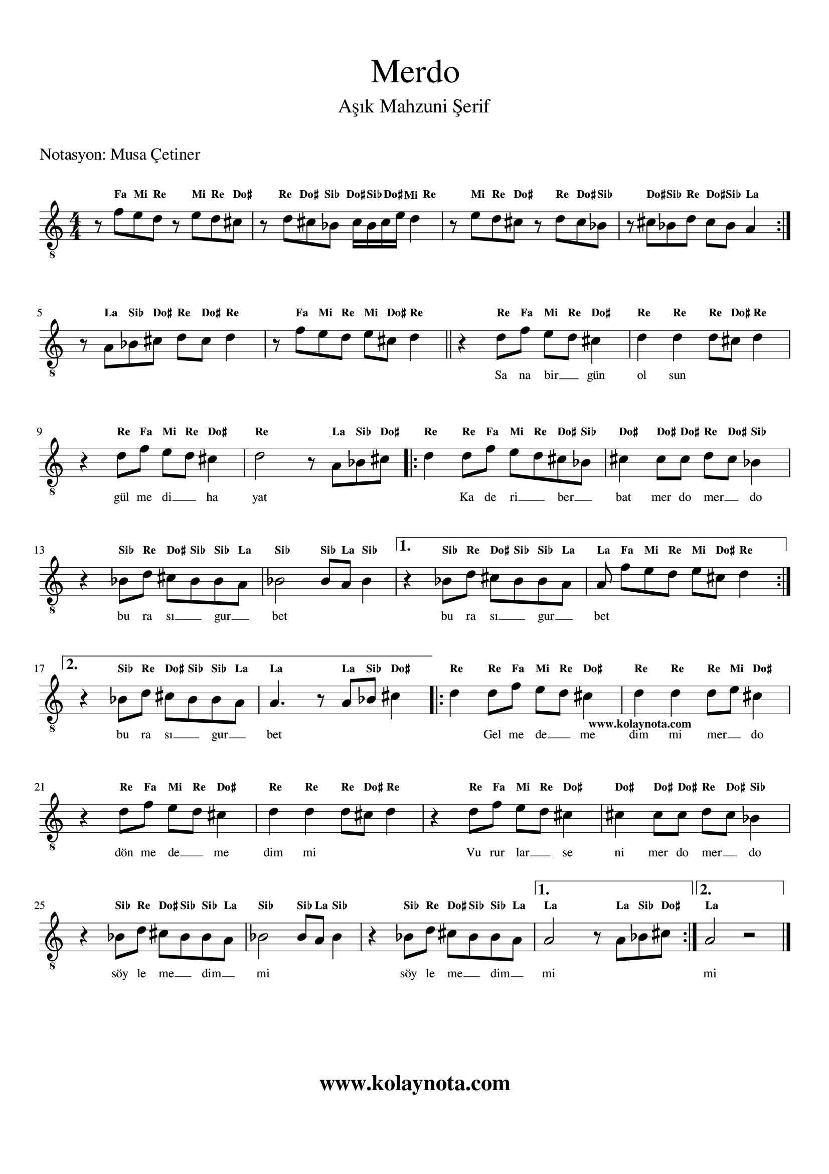 Merdo; Aşık Mahzuni Şerif‘in çok sevilen bir türküsü. Kolay bağlama notalarını paylaşacağım bu yazıda. Sitede bu şarkının do re mi notaları da var. Aşağıdaki bağlantıdan ulaşabilirsiniz.