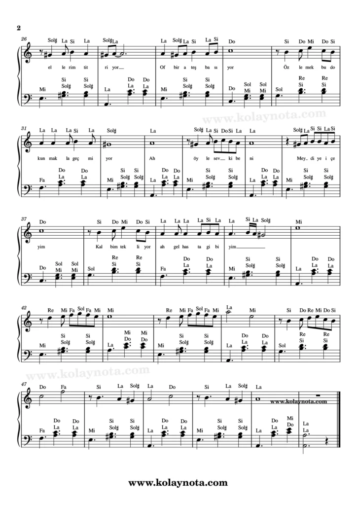 Şarkının piyano düzenlemesini de hazırladım. Sol elde akorlu bir eşlik yapısı var. Youtube kanalımdaki videosunu izleyerek çalışabilirsiniz.
