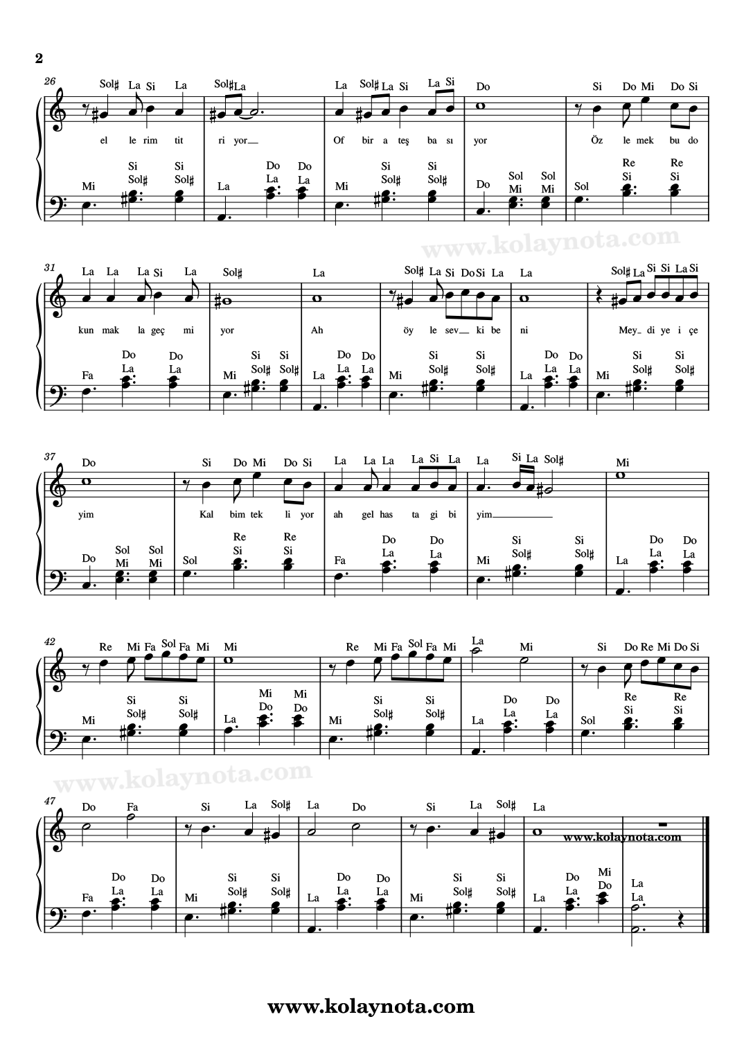 Şarkının piyano düzenlemesini de hazırladım. Sol elde akorlu bir eşlik yapısı var. Youtube kanalımdaki videosunu izleyerek çalışabilirsiniz.