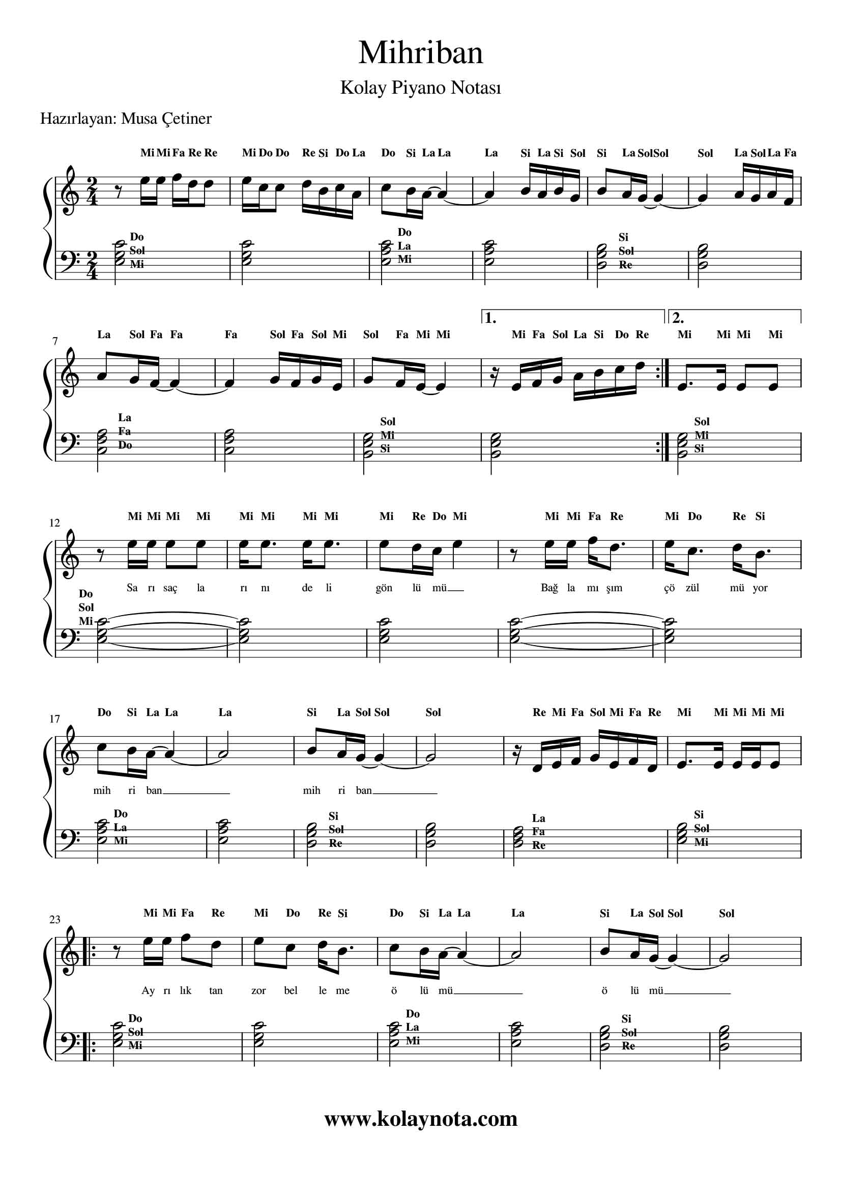 Mihriban. Musa Eroğlu. Piyano Notasyonu