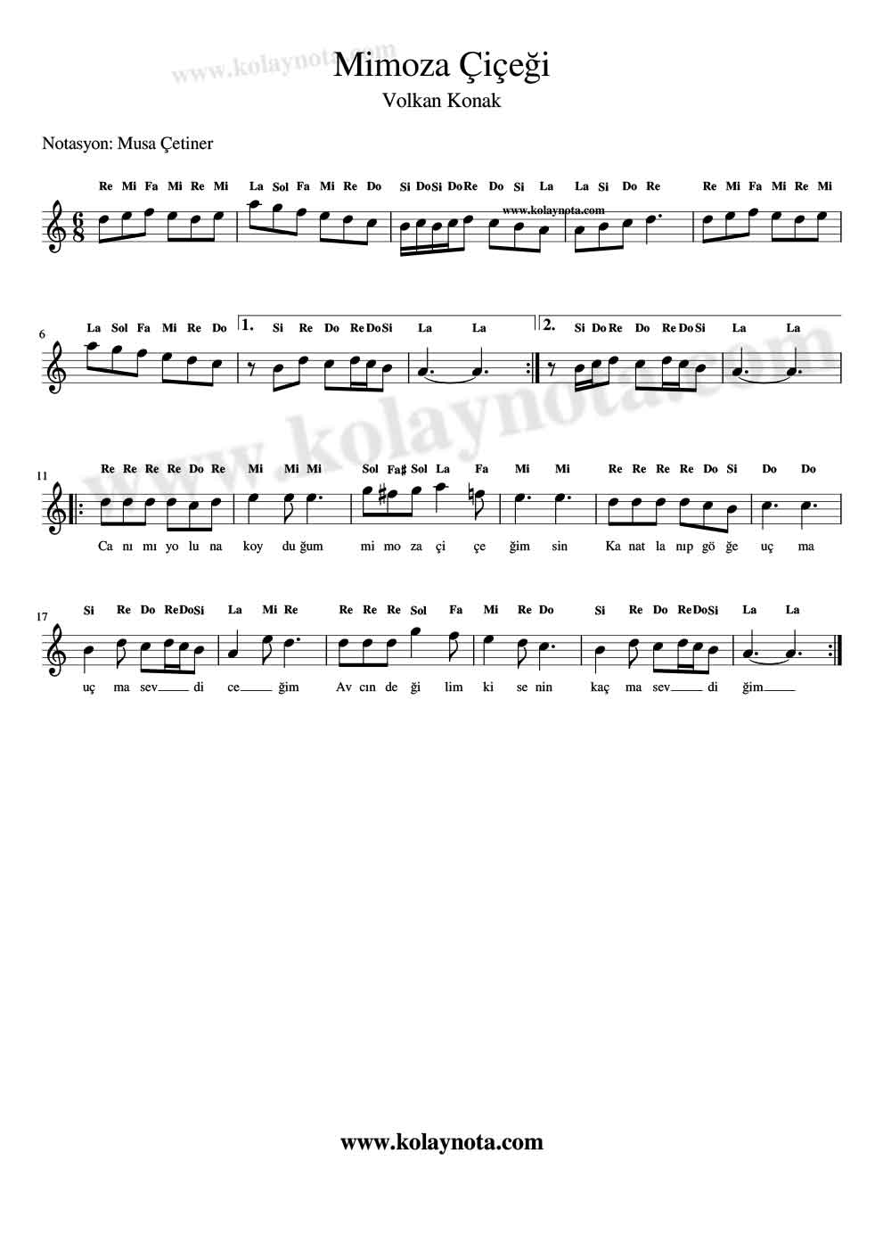 Mimoza Çiçeğim Volkan Konak‘ın en sevilen şarkılarından. Do Re Mi nota, kolay nota ve piyano notalarını paylaşıyorum. Do Re Mi nota re karar, kolay notası la karar. Size en uygun tonu seçip çalabilirsiniz.