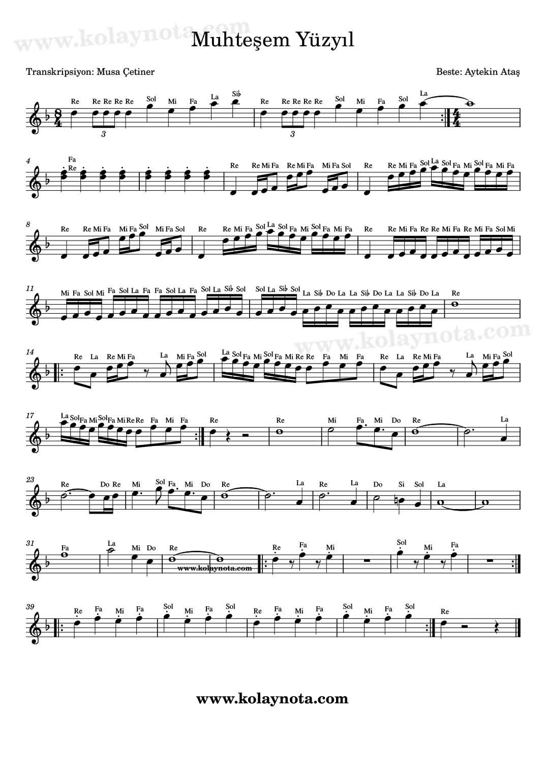 Muhteşem Yüzyıl Nota. Dizinin herkesin bildiği giriş müziğini hazırladım bu yazı için. Bestecisi Aytekin Ataş. Re Minör tonunda bir şarkı, aynı karar seste yazdım. Melodiyi çalmak için enstrümanınıza biraz hakim olmanız gerekli. Bu şarkıyı çaldıktan sonra dizinin Şehzadeler şarkısını da deneyebilirsiniz.