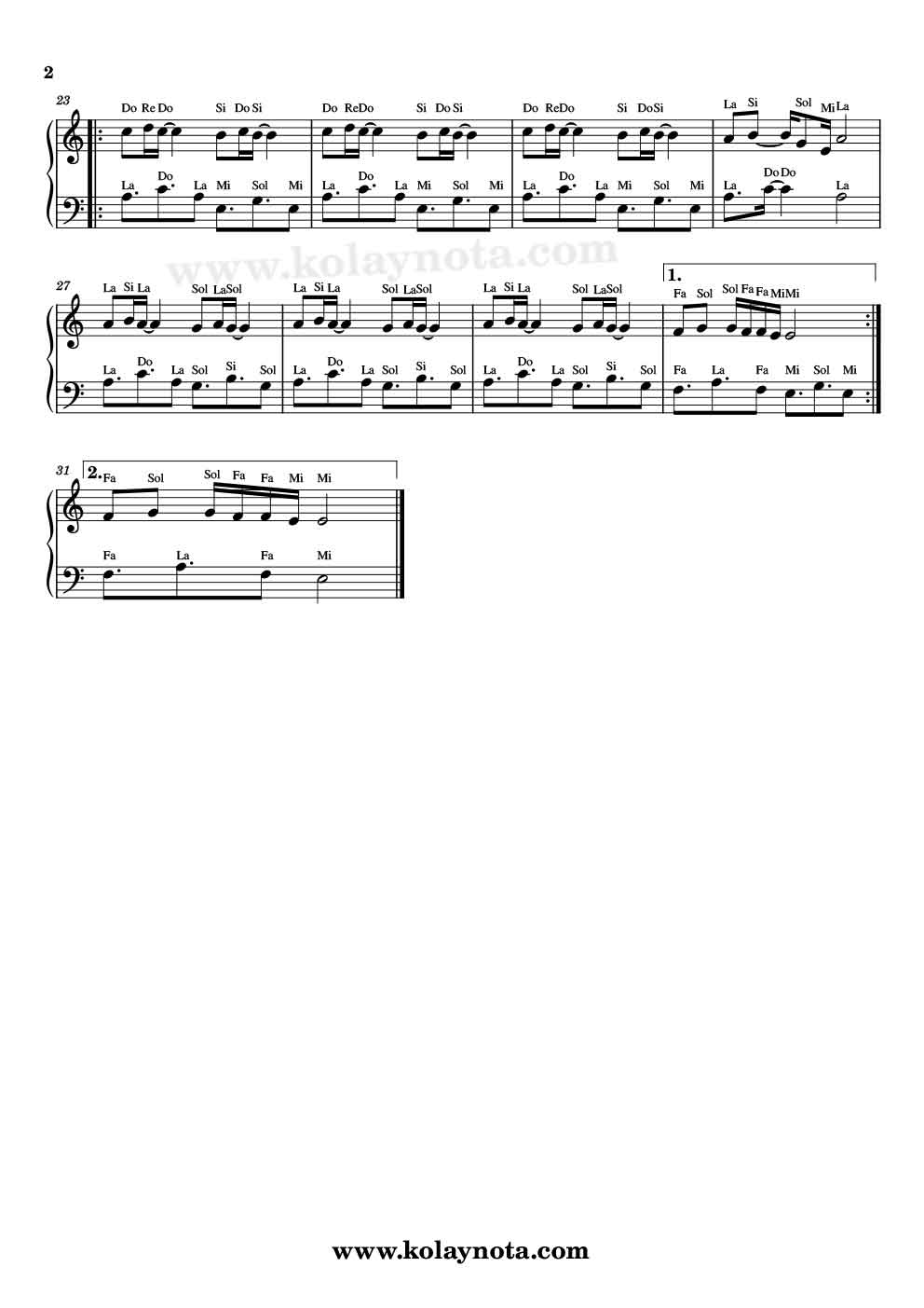 Piyano düzenlemesini de görebilirsiniz yazının içeriğinde. Sol elin eşlik yapısı yeni başlayan arkadaşları zorlayabilir. Videosunu mutlaka izleyin, yavaş versiyonu dikkatli takip ederek daha kolay çözebilirsiniz.