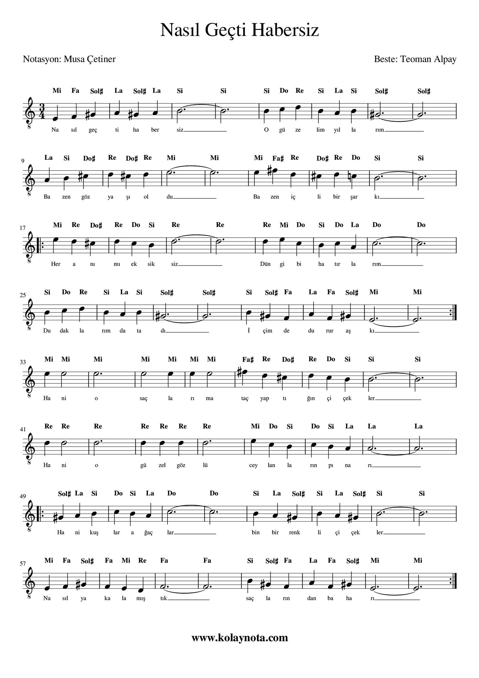Nasıl Geçti Habersiz – Kolay Notası