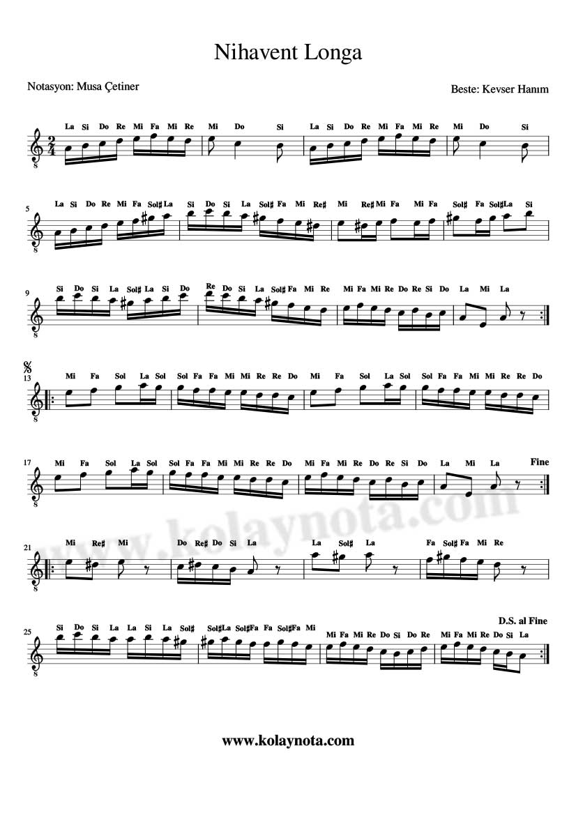 Eseri iki farklı versiyonda ekliyorum Sol Nihavend ve La Nihavend olarak. Çalması gerçekten keyifli bir eser. Başarılar.