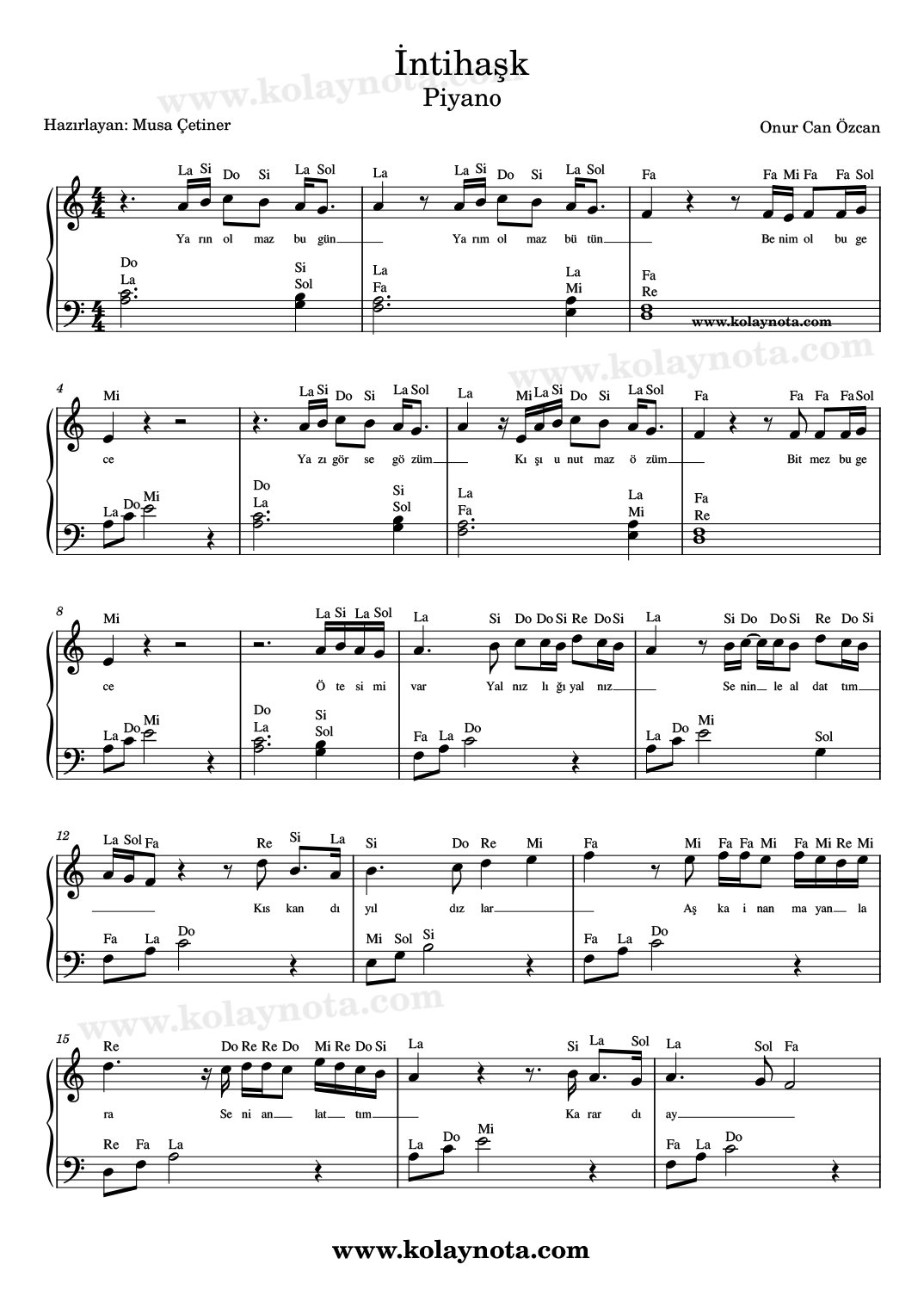 Onur Can Özcan – İntihaşk – Nota