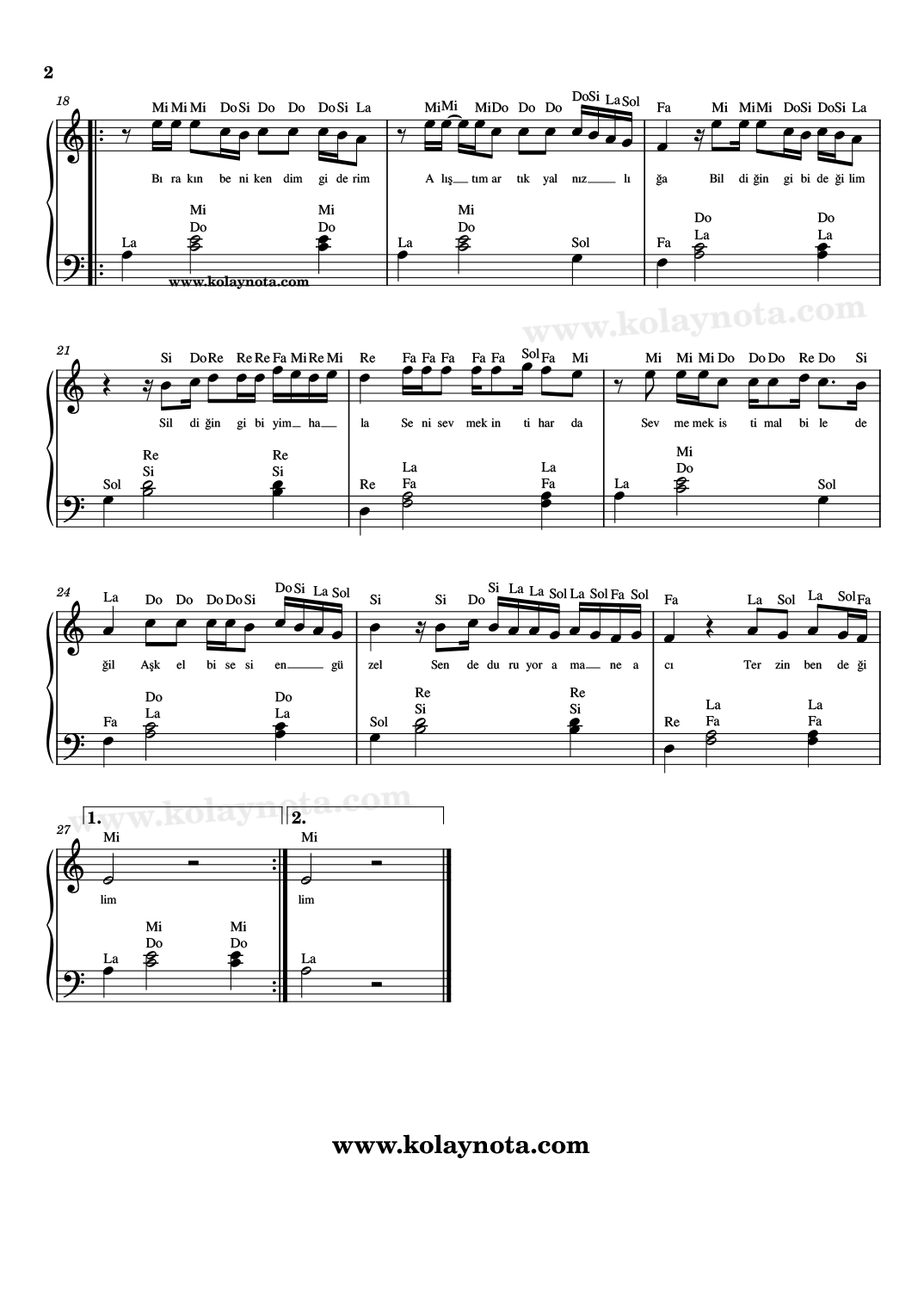 İntihaşk – Kolay Nota