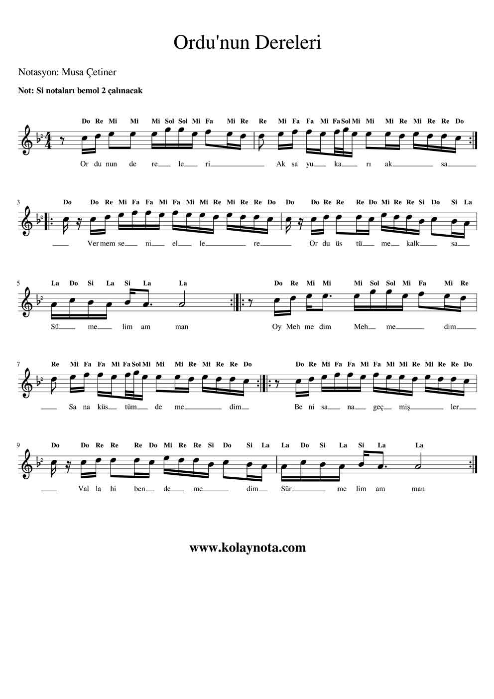 Bağlama, melodika, keman, flüt, org notaları. Ordu yöresine ait bir türkü. Her ne kadar notaları bağlama için yazmış olsam da diğer çalgılarda da çalabilirsiniz. Kolay notasını ve standart notasını görebilirsiniz bu yazıda. Nota oynatıcısını da ekliyorum dinleyip daha doğru bir şekilde çalabilirsiniz türküyü. Sorularınızı yorumlara yazabilirsiniz. Siteye de abone olursanız sevinirim. Teşekkürler.