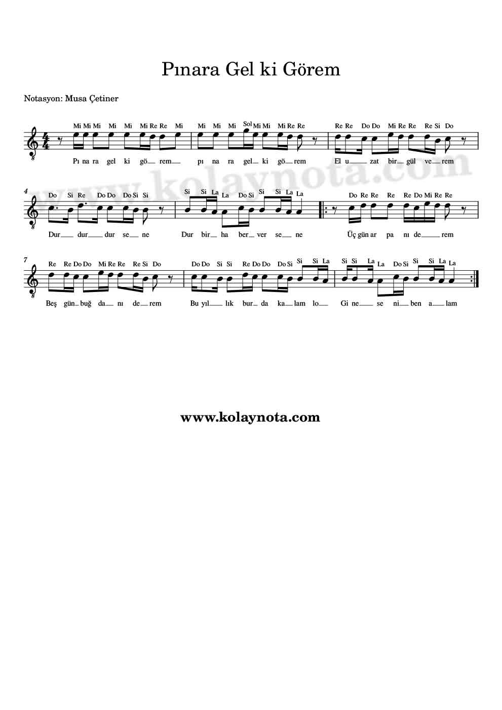 Pınara Gel ki Görem Do Re Mi ve Kolay Notasyon