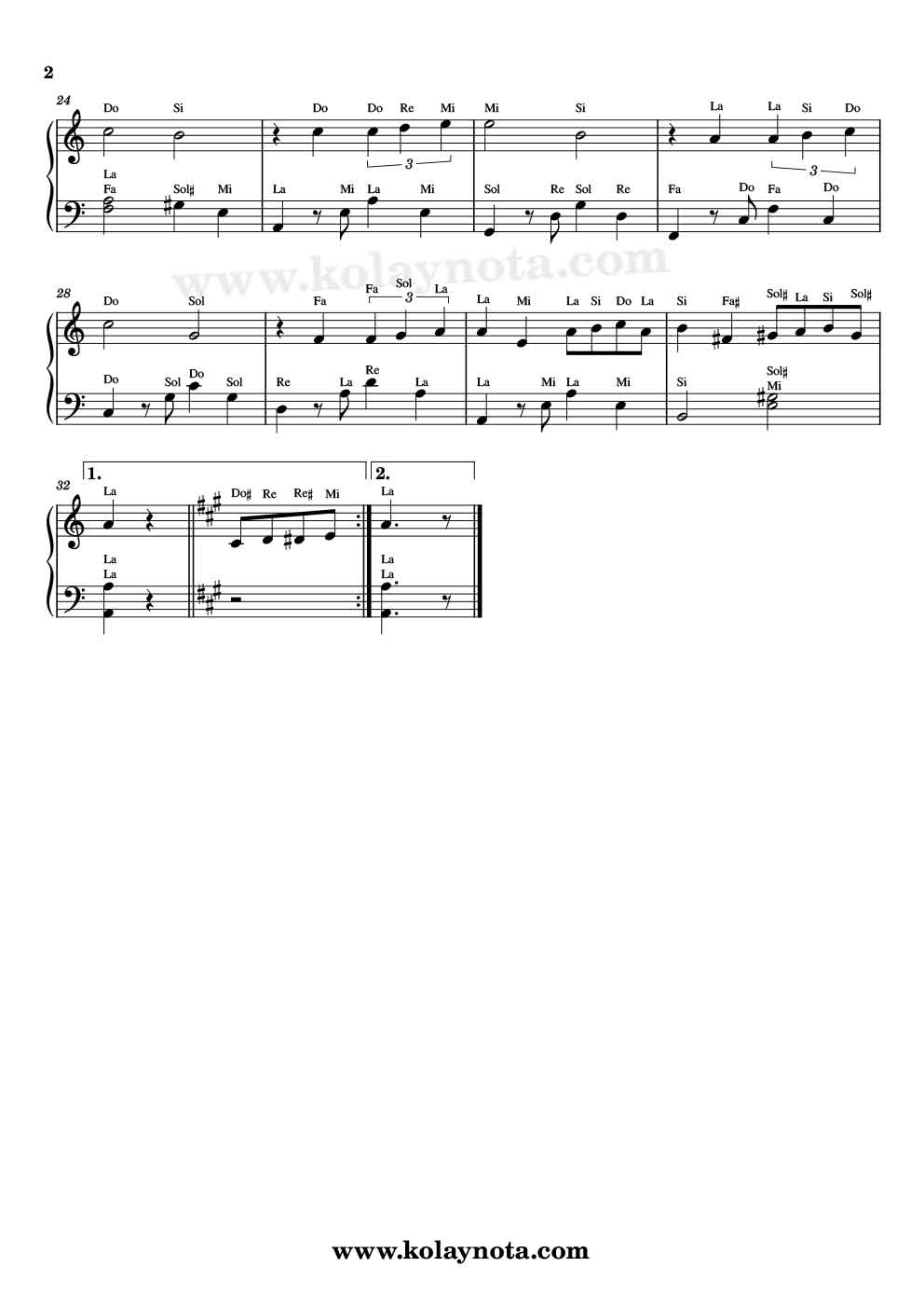 Kolay Nota ve Piyano Düzenlemesi
