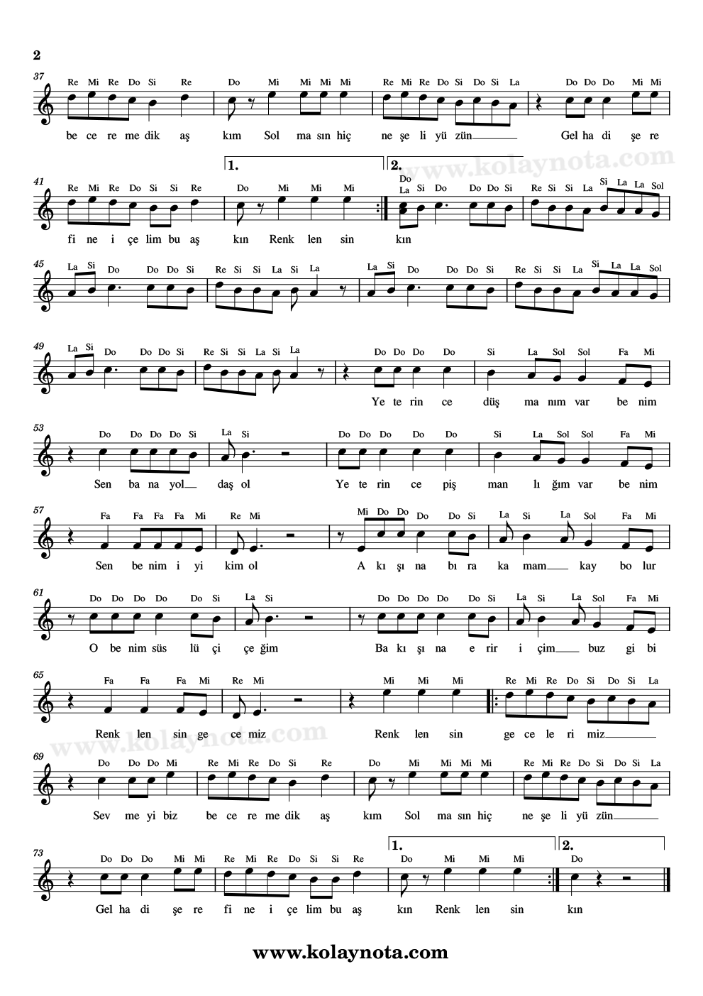 Renklensin şarkısının notaları bu yazının konusuydu. Popüler şarkıları seviyorsanız sitemde çok sayıda şarkıya ulaşabilir, enstrüman eğitiminiz için kullanabilirsiniz. Notasyonları keman, piyano, melodika, bağlama, flüt, ud, org gibi çalgılarda çalabilirsiniz. Teşekkürler.