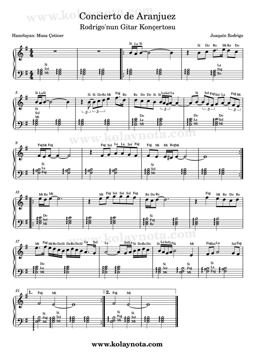 Rodrigo’nun Gitar Konçertosu – Piyano Notası