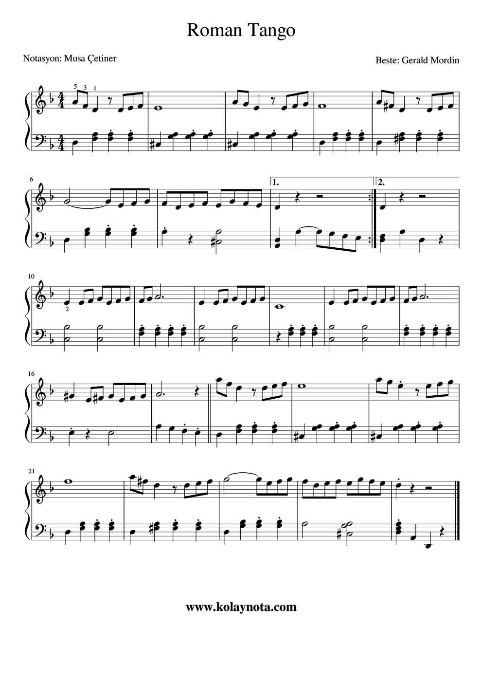 Roman Tango – Kolay ve Standart Piyano Notasyon