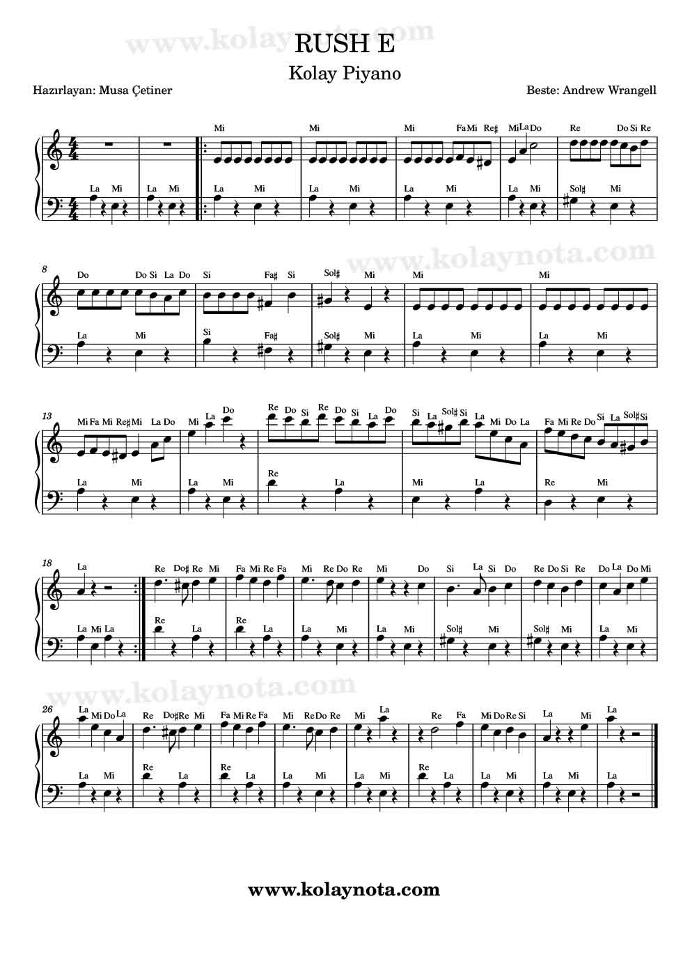 Rush E Piyano Notası