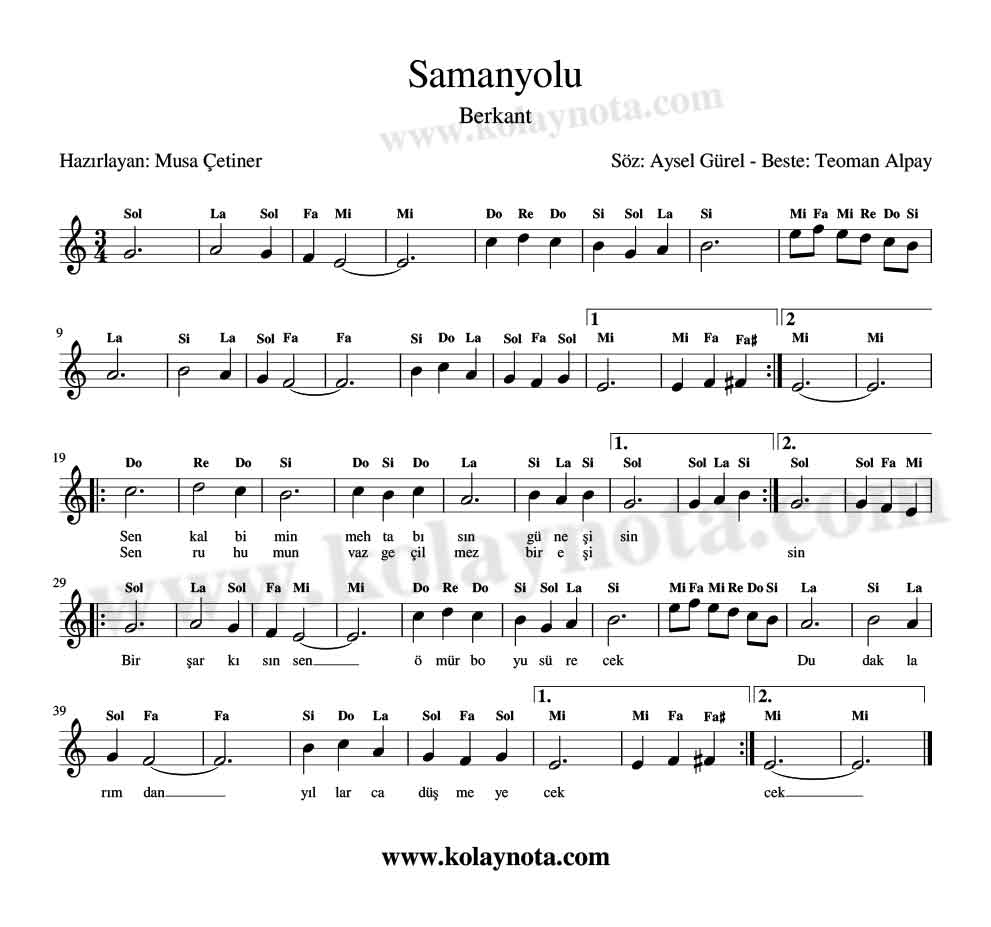 Samanyolu şarkısını kalimbada çalmak isterseniz notalarına aşağıdaki linkten ulaşabilirsiniz.