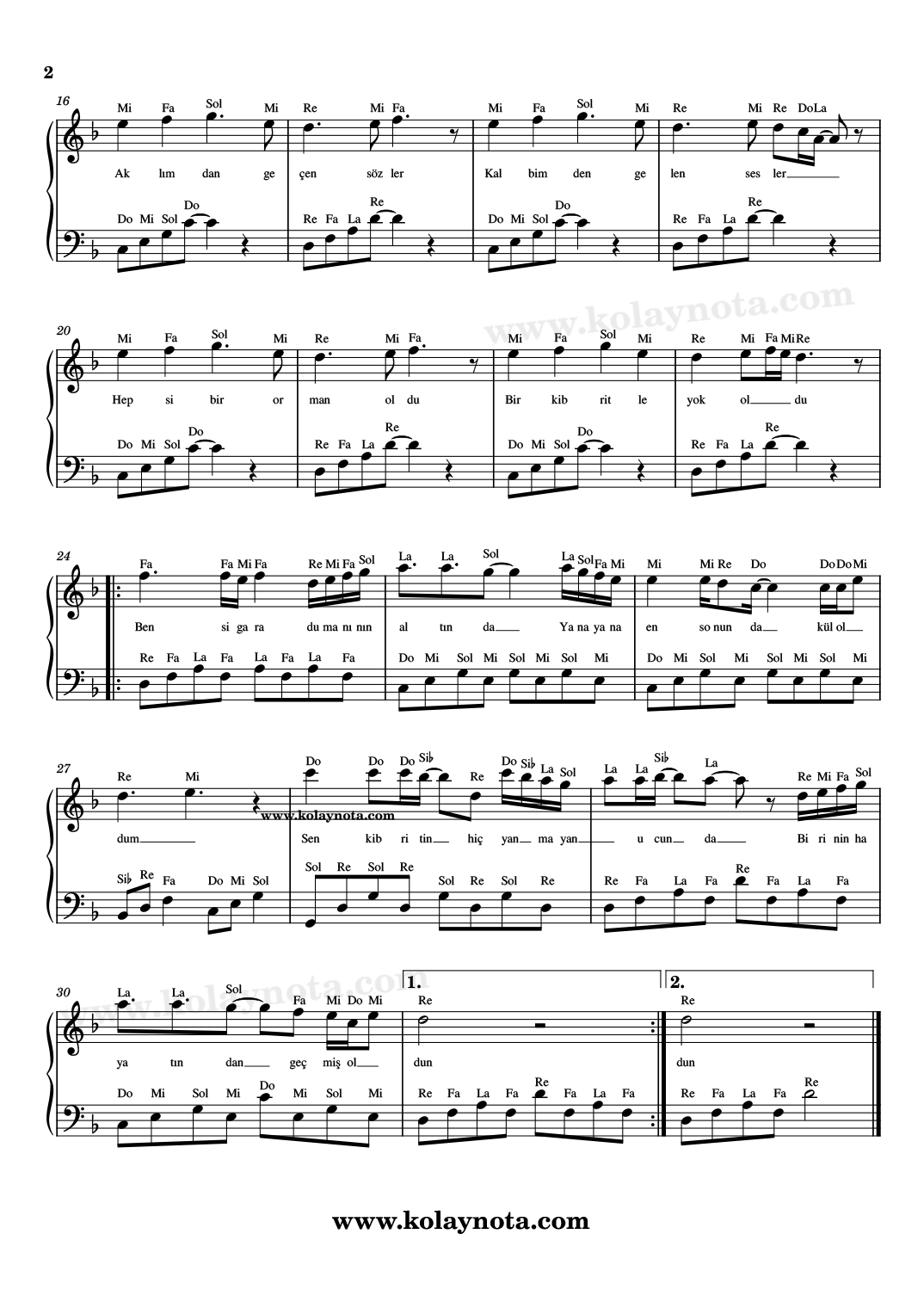 Şarkının kolay notasyonunu PDF ve imaj formatında görebilir, keman, melodika, flüt, piyano, org gibi çalgılarda çalabilirsiniz.