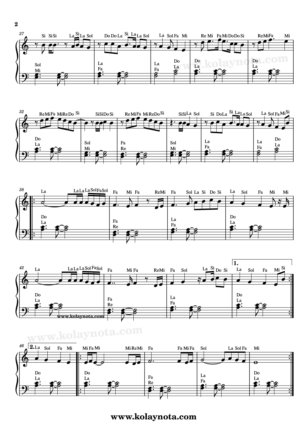 Piyano düzenlemesini kolay biçimde hazırladım. Sol elde 2 sesli akorlardan oluşan bir eşlik var. Youtube kanalıma videosunu yükledim. Mutlaka izleyiniz.