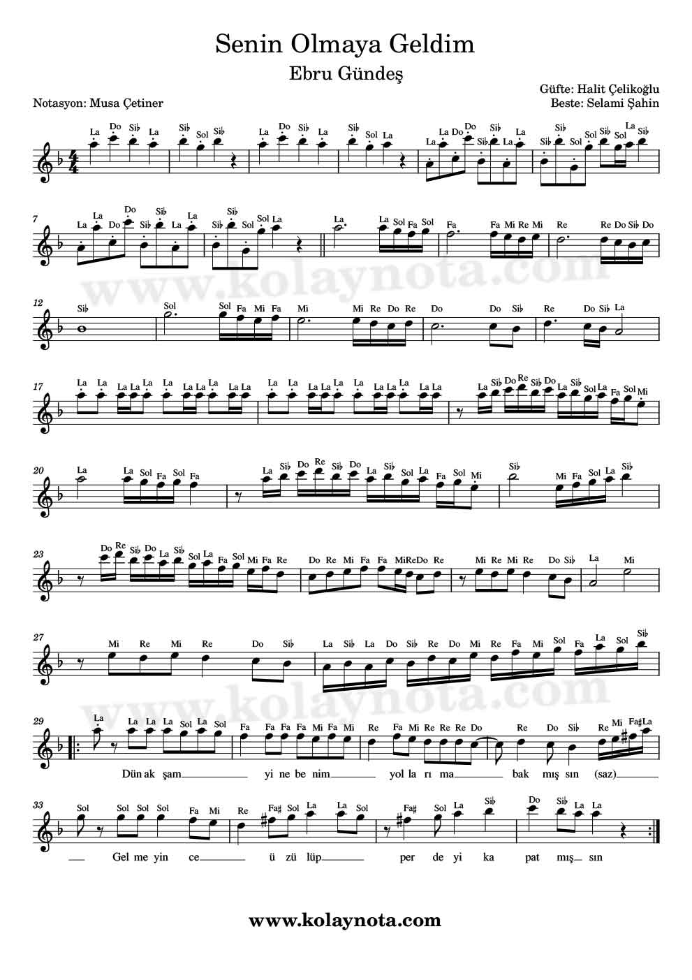 Senin Olmaya Geldim Do Re Mi ve Kolay Notasyon