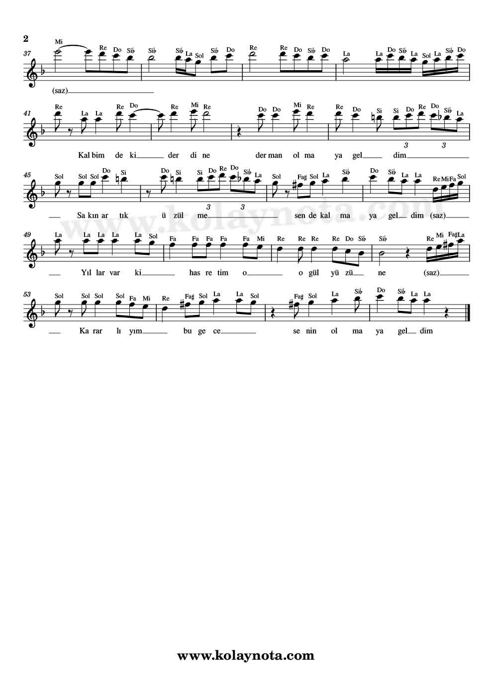 Güftesi Halit Çelikoğlu, bestesi Selami Şahin‘e ait olan, Kürdi makamında bir şarkı. Do Re Mi ve Kolay notasını La Karar sesinde paylaşacağım. Do Re Mi nota sadece sözlü bölümleri içeriyor, kolay notası ise daha geniş bir versiyon. Şarkı günümüze kadar çok sayıda yorumcu tarafından seslendirilmiş. Ebru Gündeş ve Nil Burak‘ın yorumuyla daha çok tanınıyor sanırım.