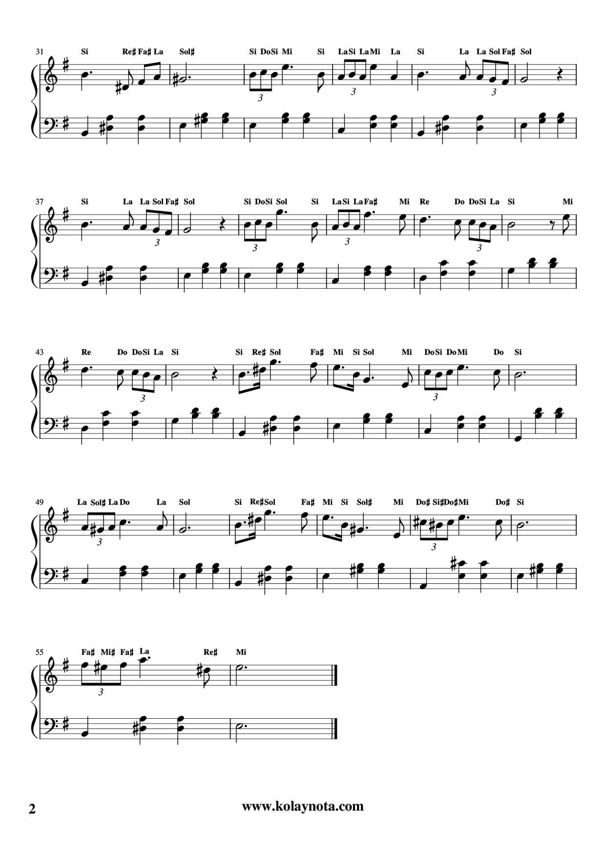 Serenade Piyano Kolay Notası