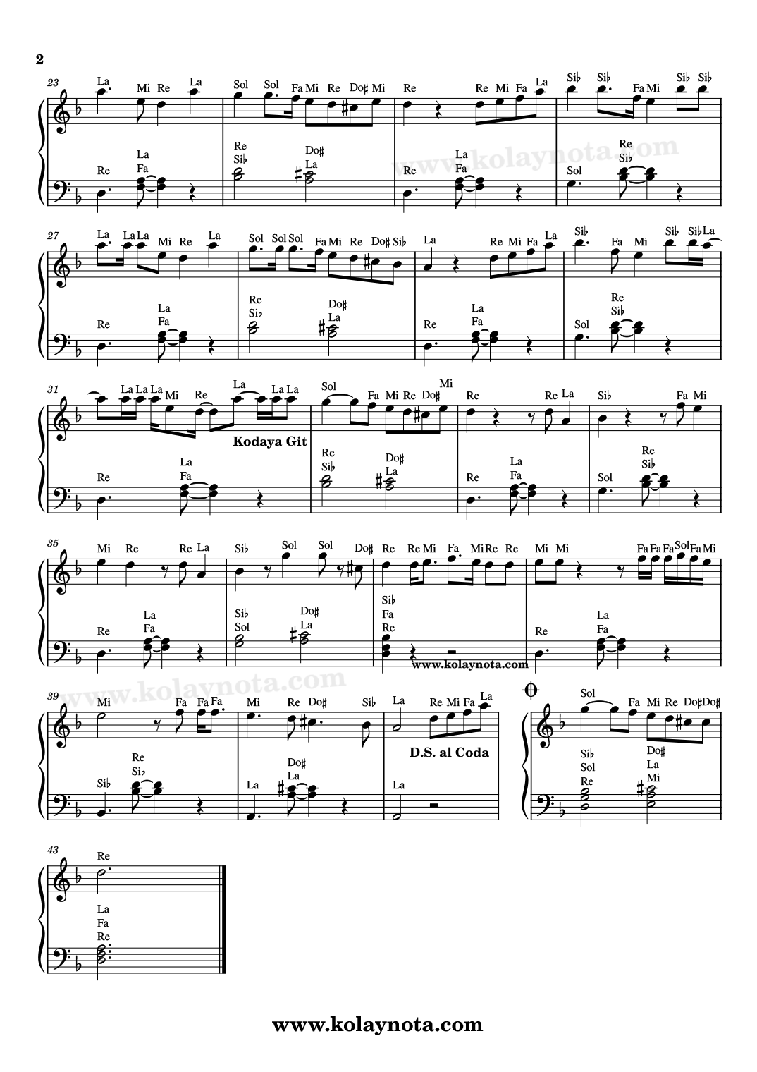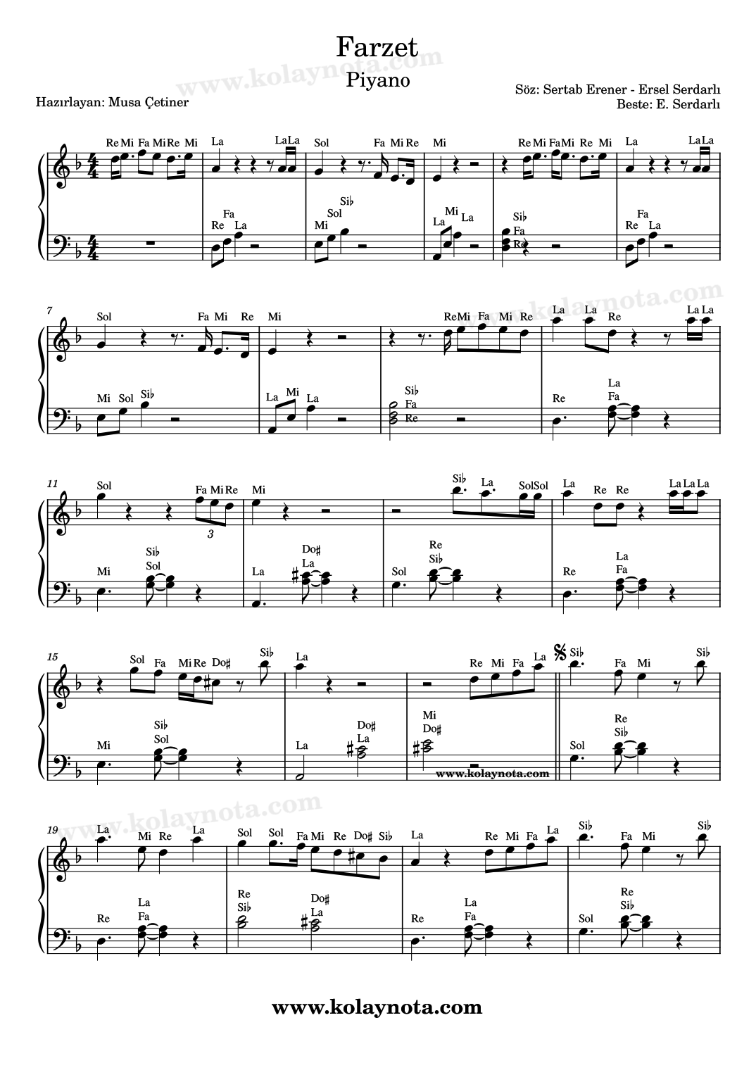 Farzet – Piyano Notası