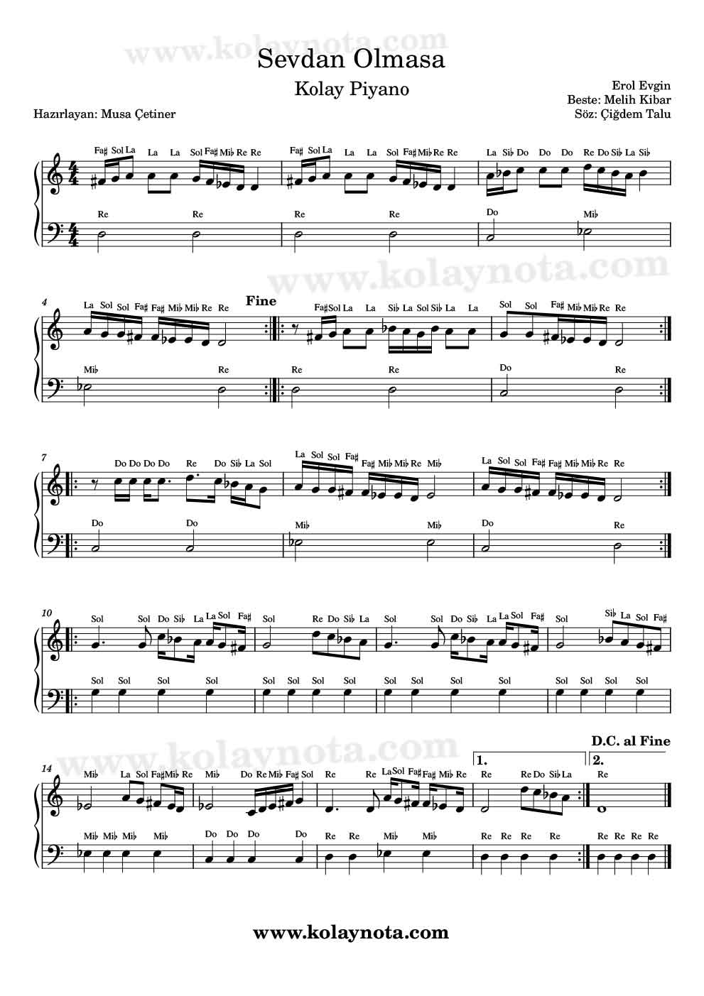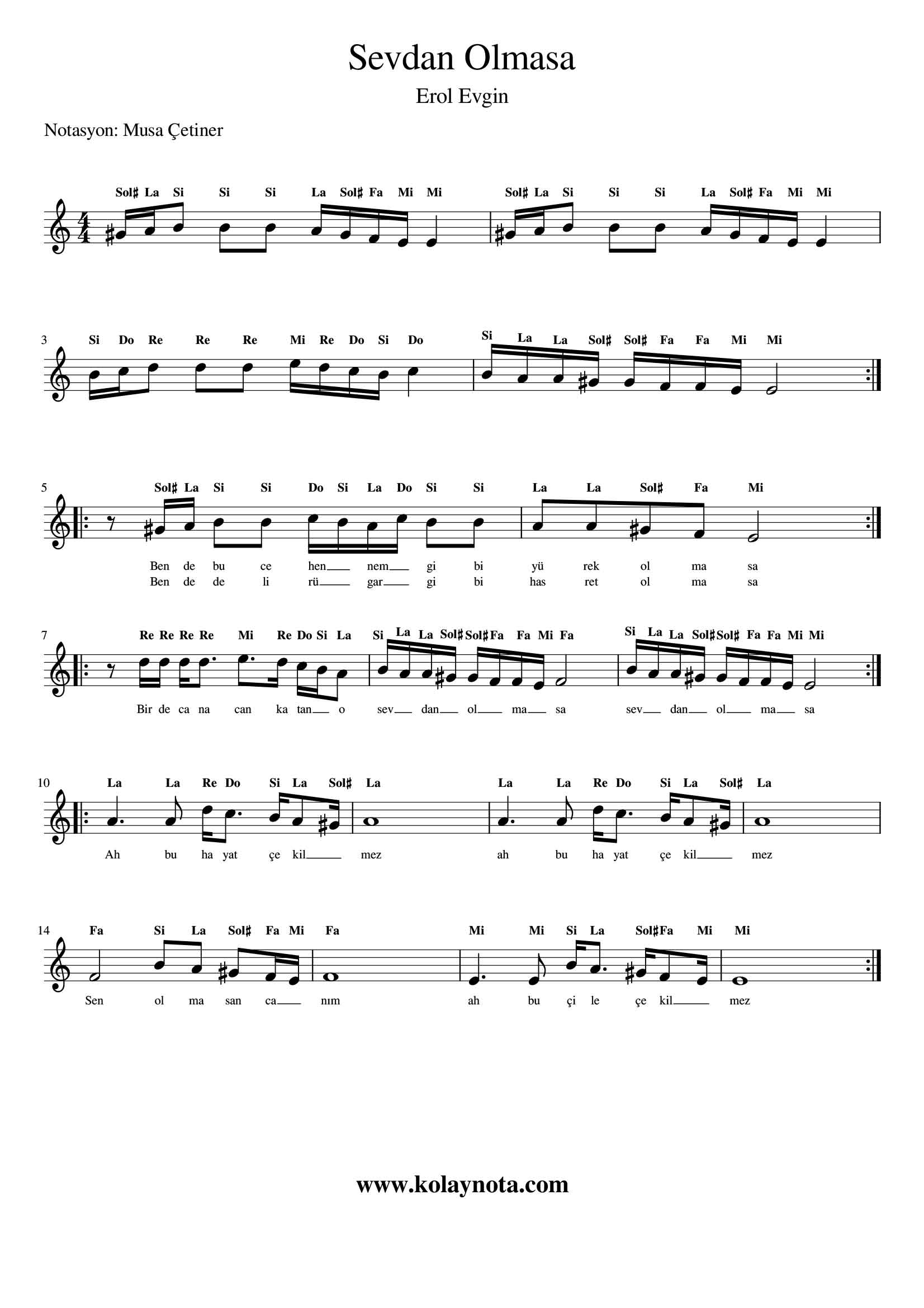Sevdan Olmasa – Kolay Notası