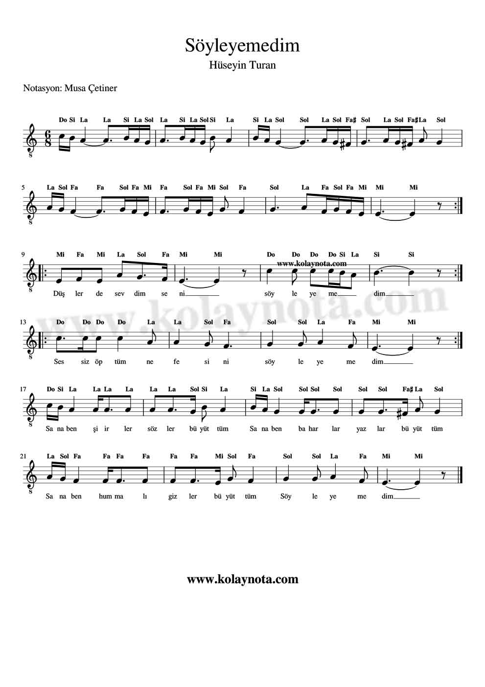Söyleyemedim – Kolay Notası