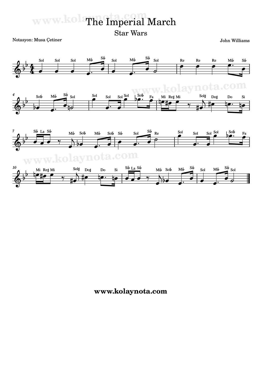 The Imperial March (Star Wars – İmparatorluk Marşı) Star Wars film serisinin çok sevilen melodisi. Besteci John Williams. Do Re Mi ve Kolay Notasını şarkının orjinal tonu olan Sol Minör tonunda hazırladım.