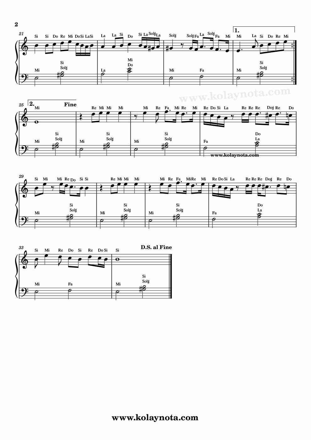 Piyano düzenlemesini de görebilirsiniz yazının içeriğinde. Mi karar sesinde ve akor eşlikli biçimde hazırladım. Youtube kanalıma videosunu yükledim, izleyip doğru bir şekilde çalışabilirsiniz.