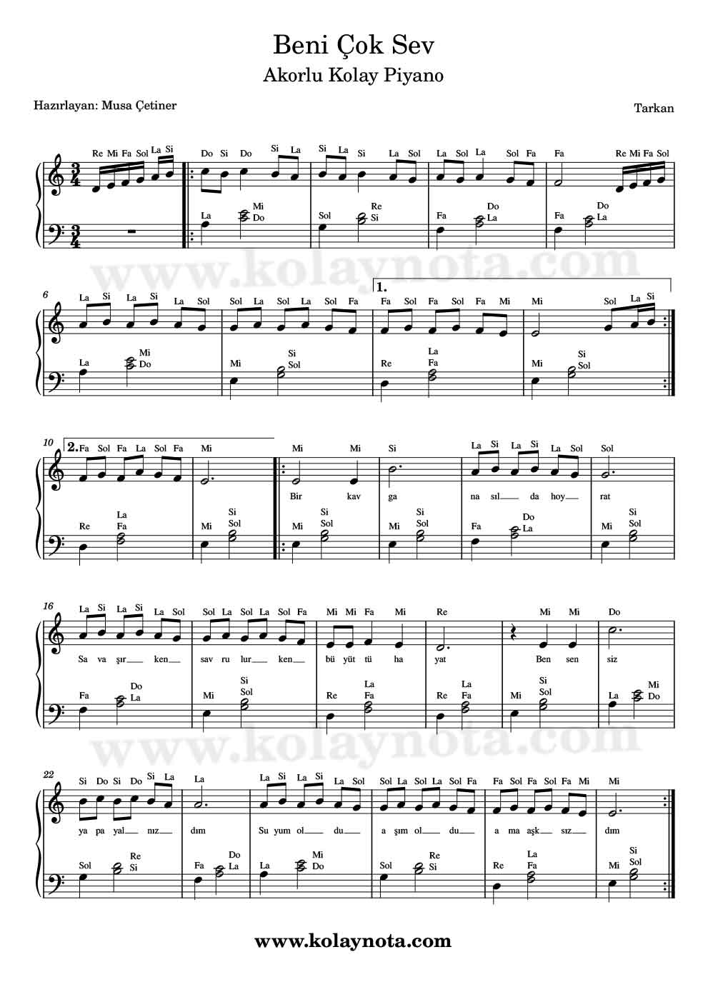 Tarkan – Beni Çok Sev – Do Re Mi Kolay ve Piyano Notaları