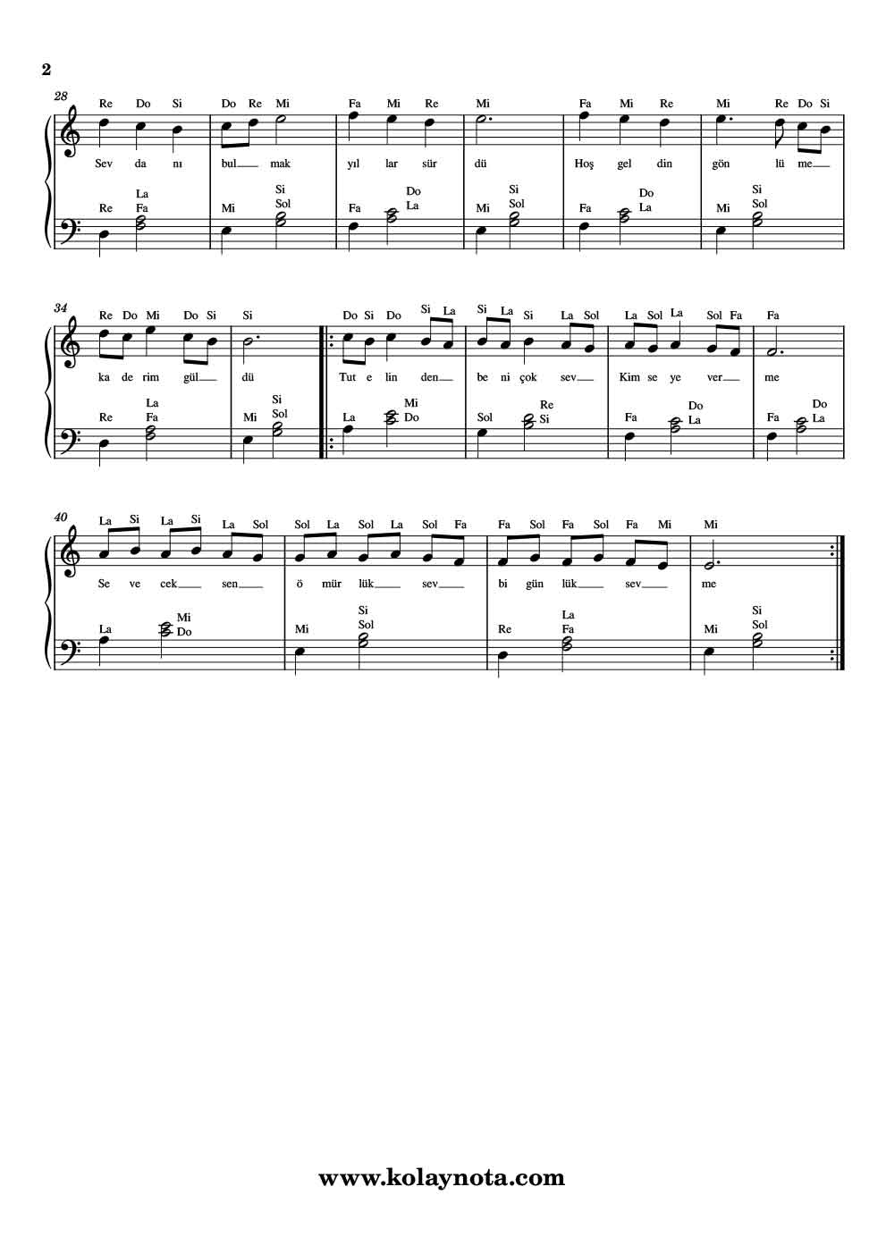 Beni Çok Sev – Do Re Mi Kolay Notaları ve Piyano Notaları