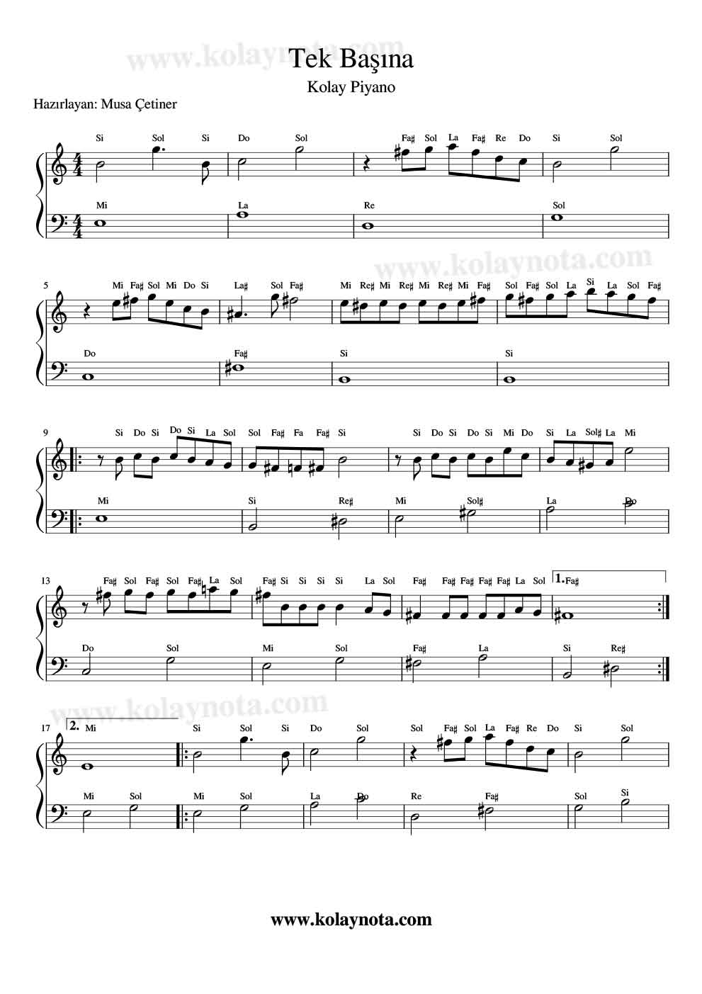 Tek Başına – Kolay Nota by Musa Çetiner