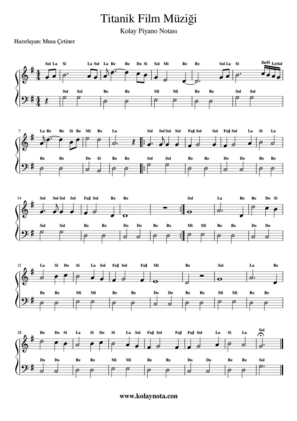 Titanik – Kolay Piyano Notası