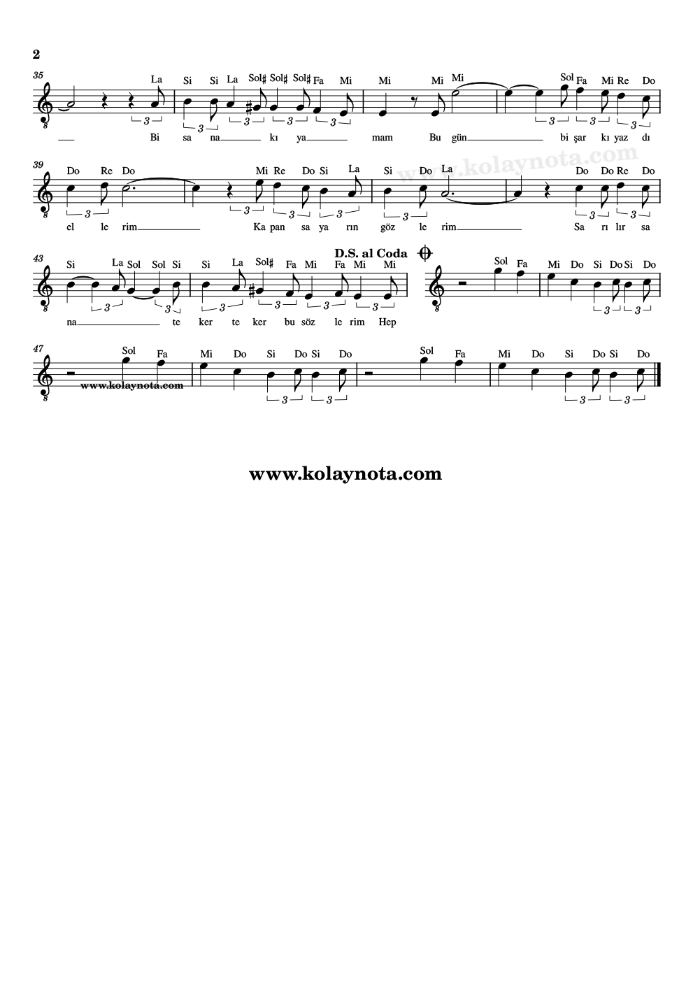 Cümlelerim – Kolay Nota