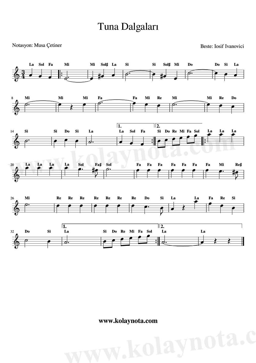Tuna Dalgaları Valsi – Kolay Notası ve Piyano Notaları