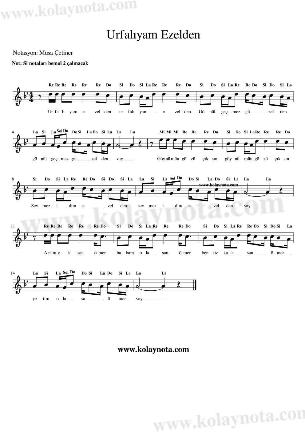 Urfalıyam Ezelden Kolay Bağlama Notaları